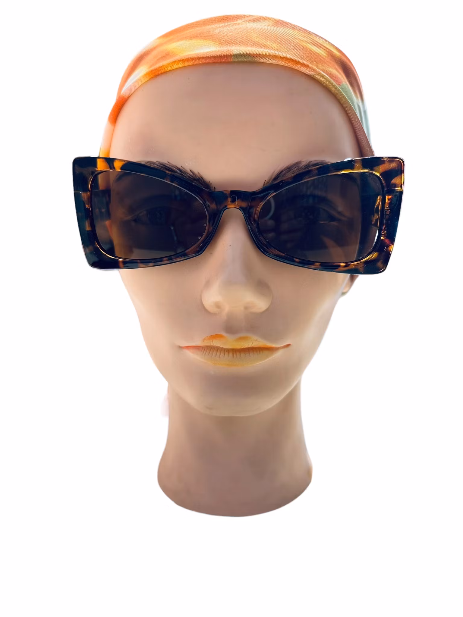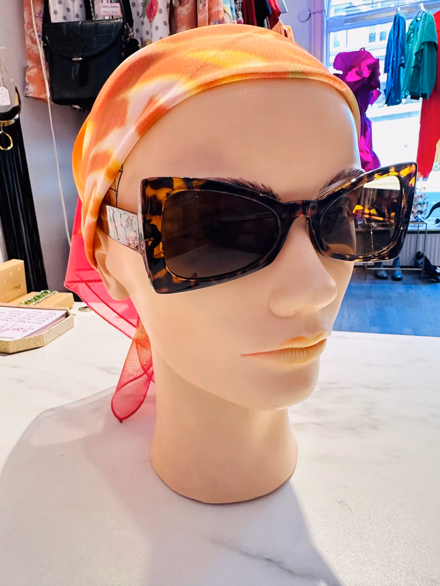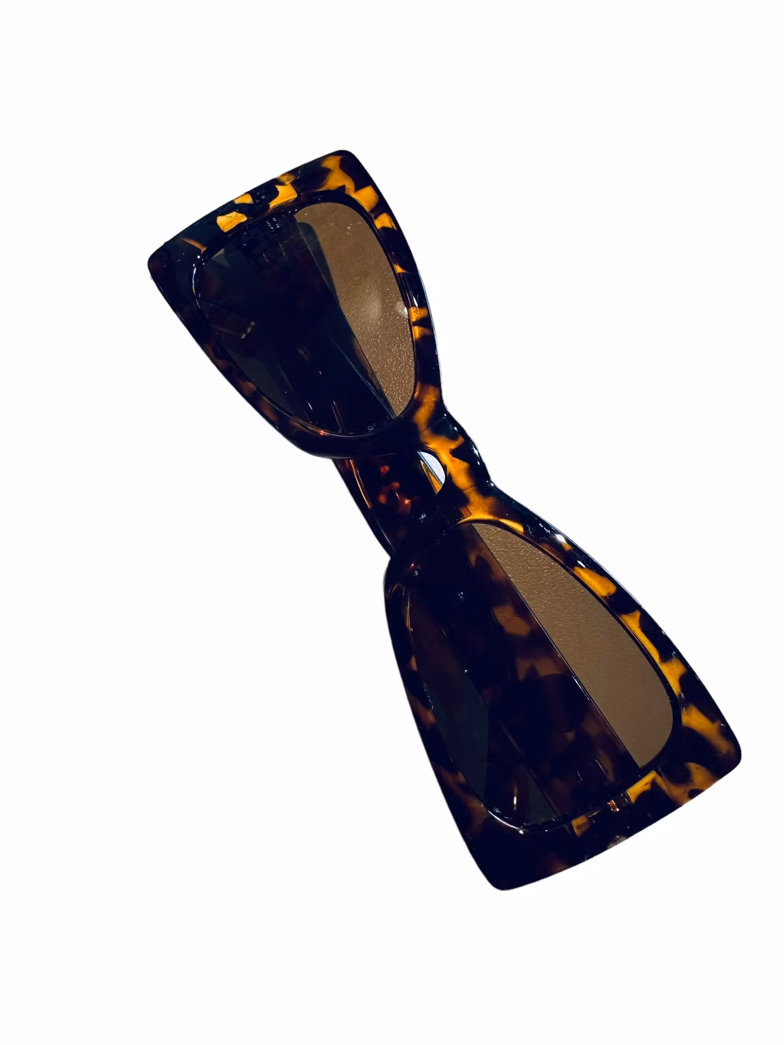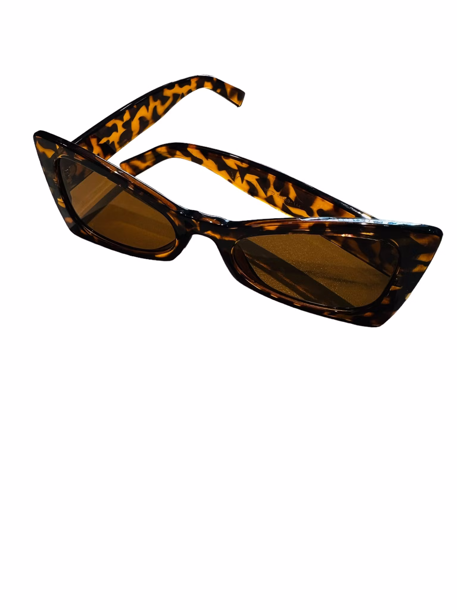 Beskrivning: Solglasögon med bruna fjärilsformade bågar.