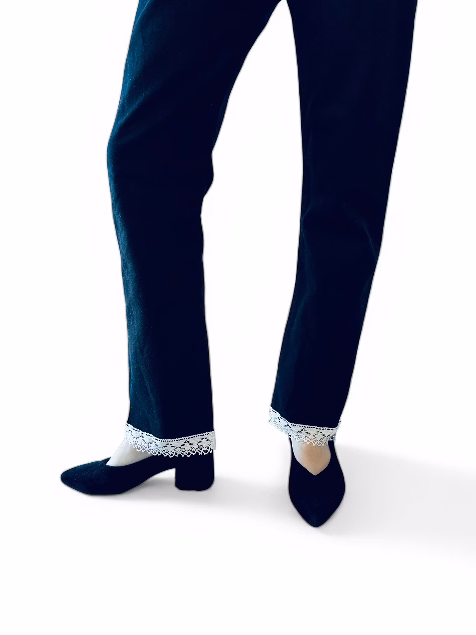 Mått: Midja (mätt rakt över) 39 cm, innerbenslängd 74 cm med spets