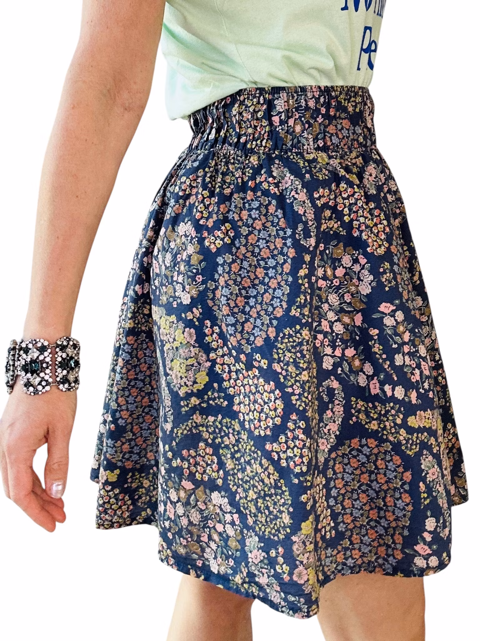 Beskrivning: En kjol som prickar in boho-trenden i både färg och mönster. Från HM med bred resår i midjan och vid kjol som slutar på mitten av låret.