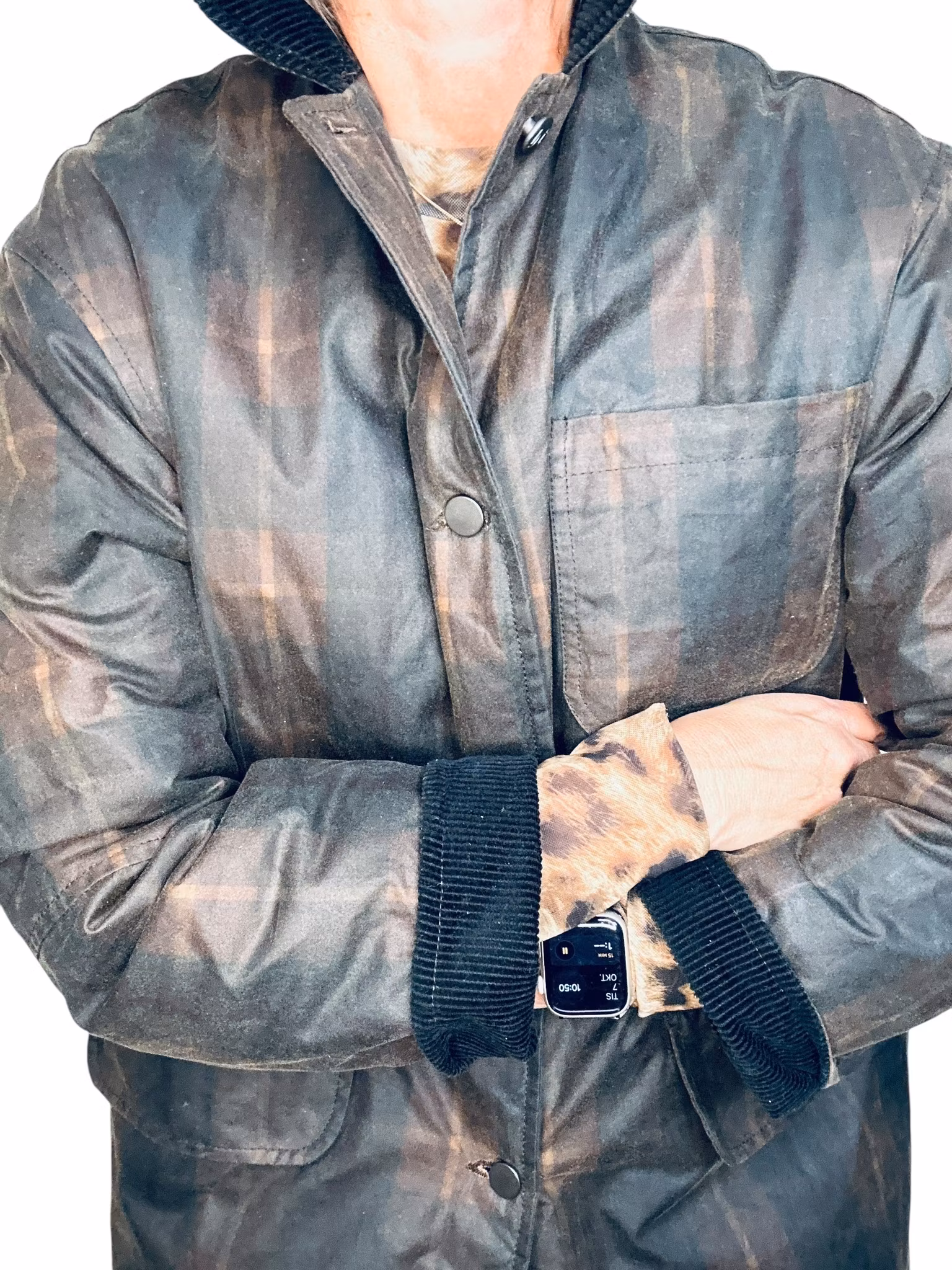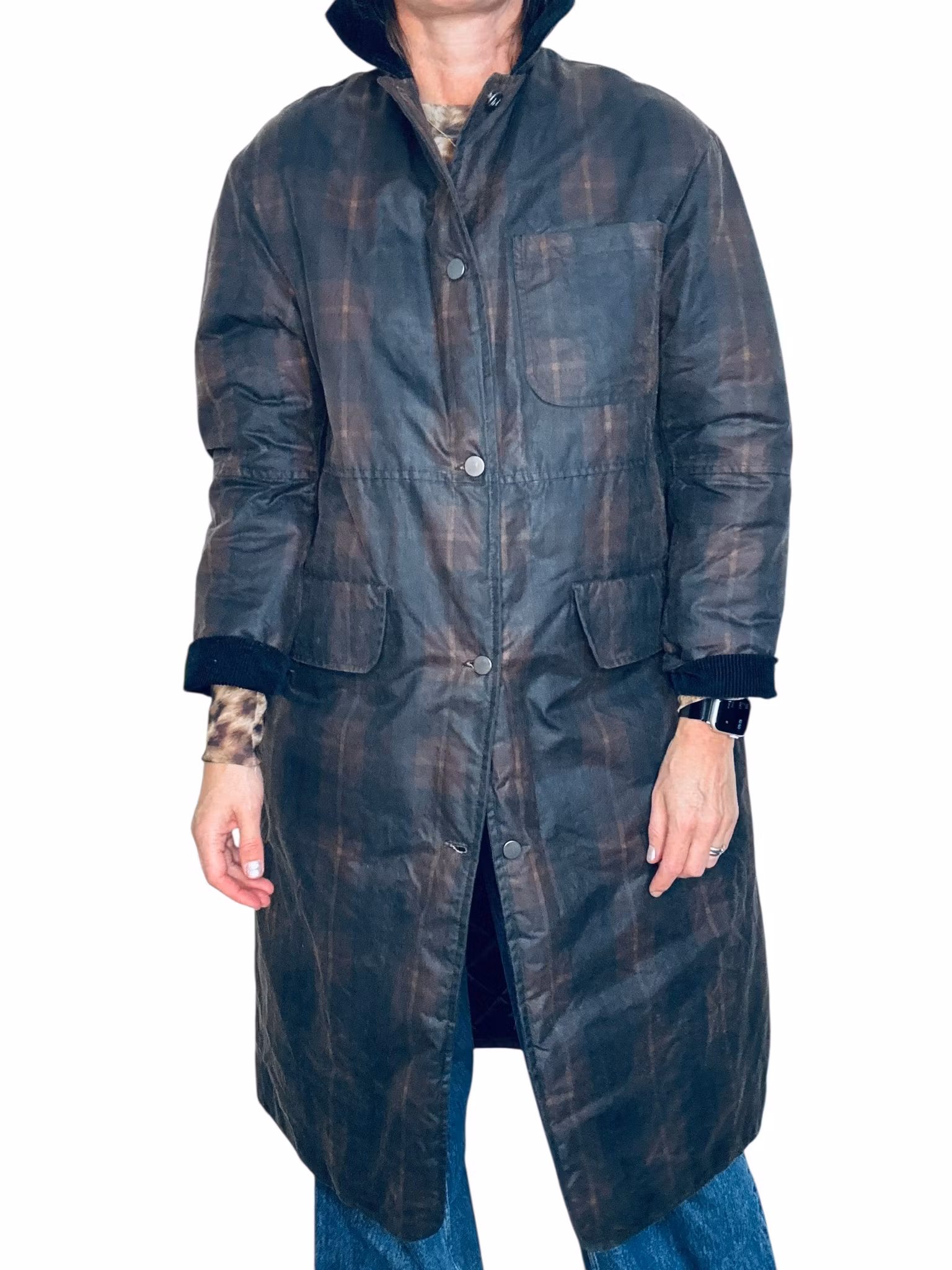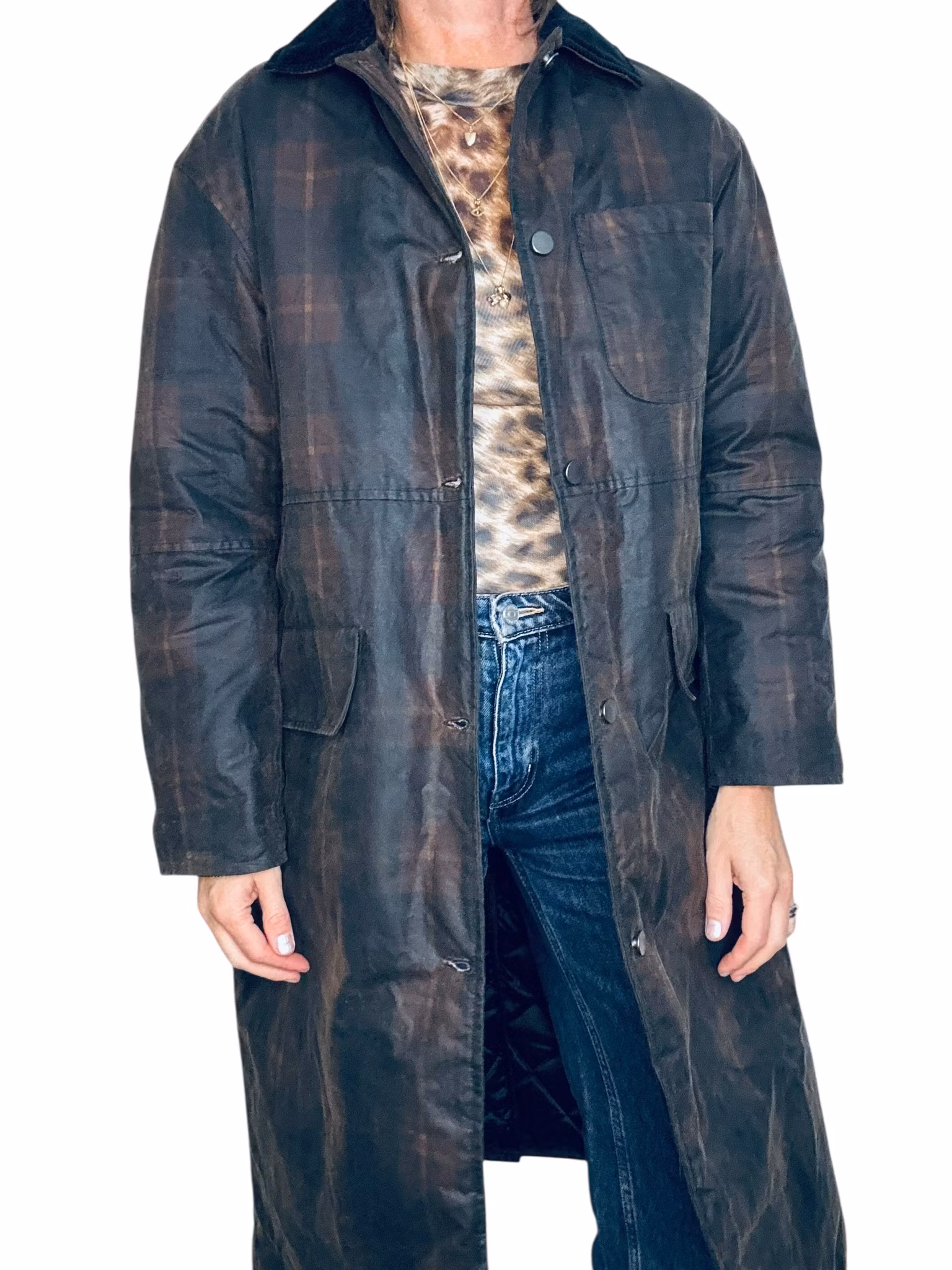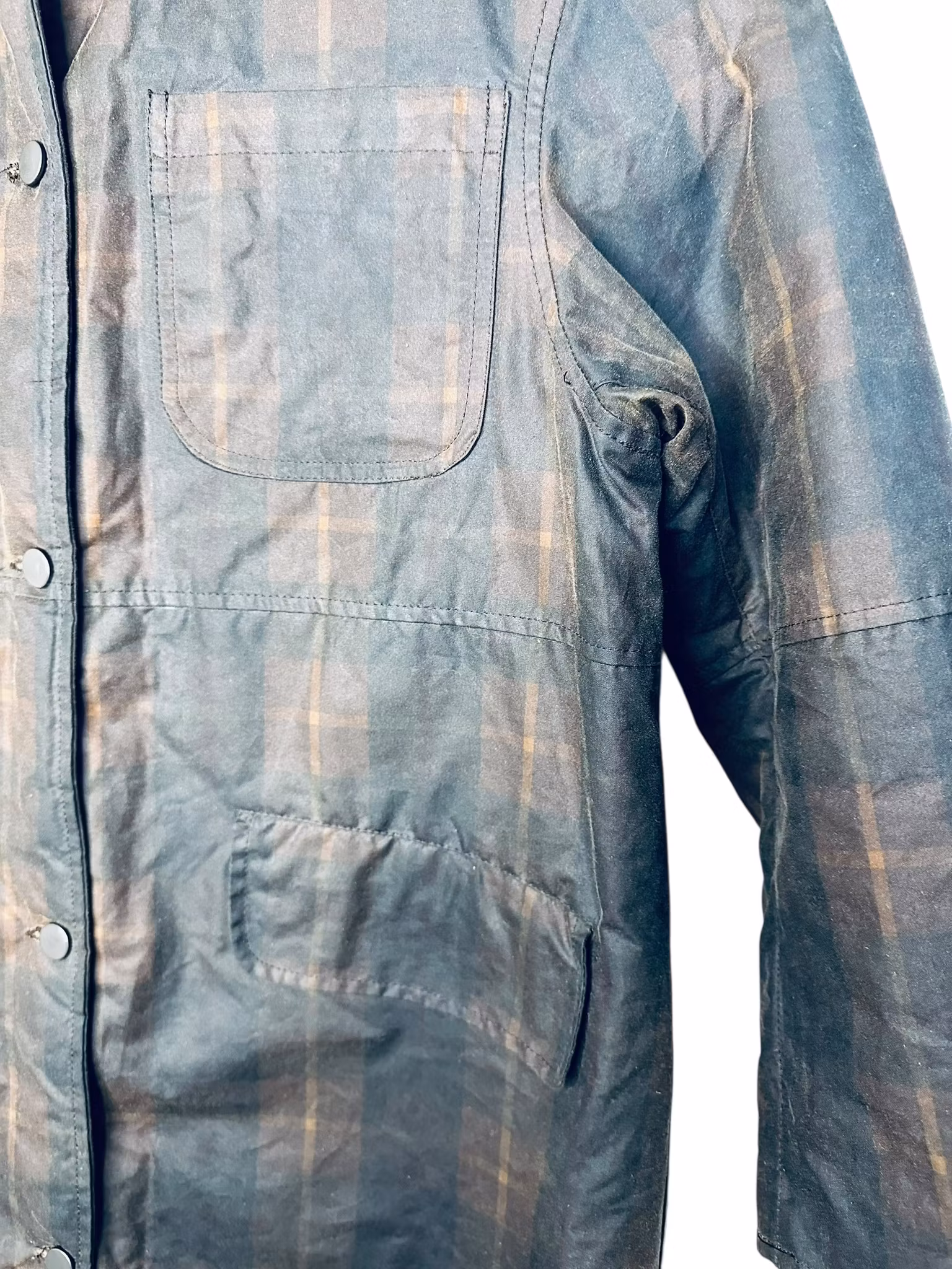 Beskrivning: En nutida klassiker - svensk Brixtol Textiles jacka Joan Jett padded med vattenavvisande vaxad bomullsyta. Den här är i färgen/printet brown tartan och har en brun manchesterkrage - ett tyg som även finns inuti ärmarna som en kan vika upp om en vill. Fickor med lock i sidorna och en bröstficka. Finns också innerfickor. Stängs med tryckknappar. Uppfattas som rymlig i storlek, se mått nedan. De första bilderna är lånade produktbilder.