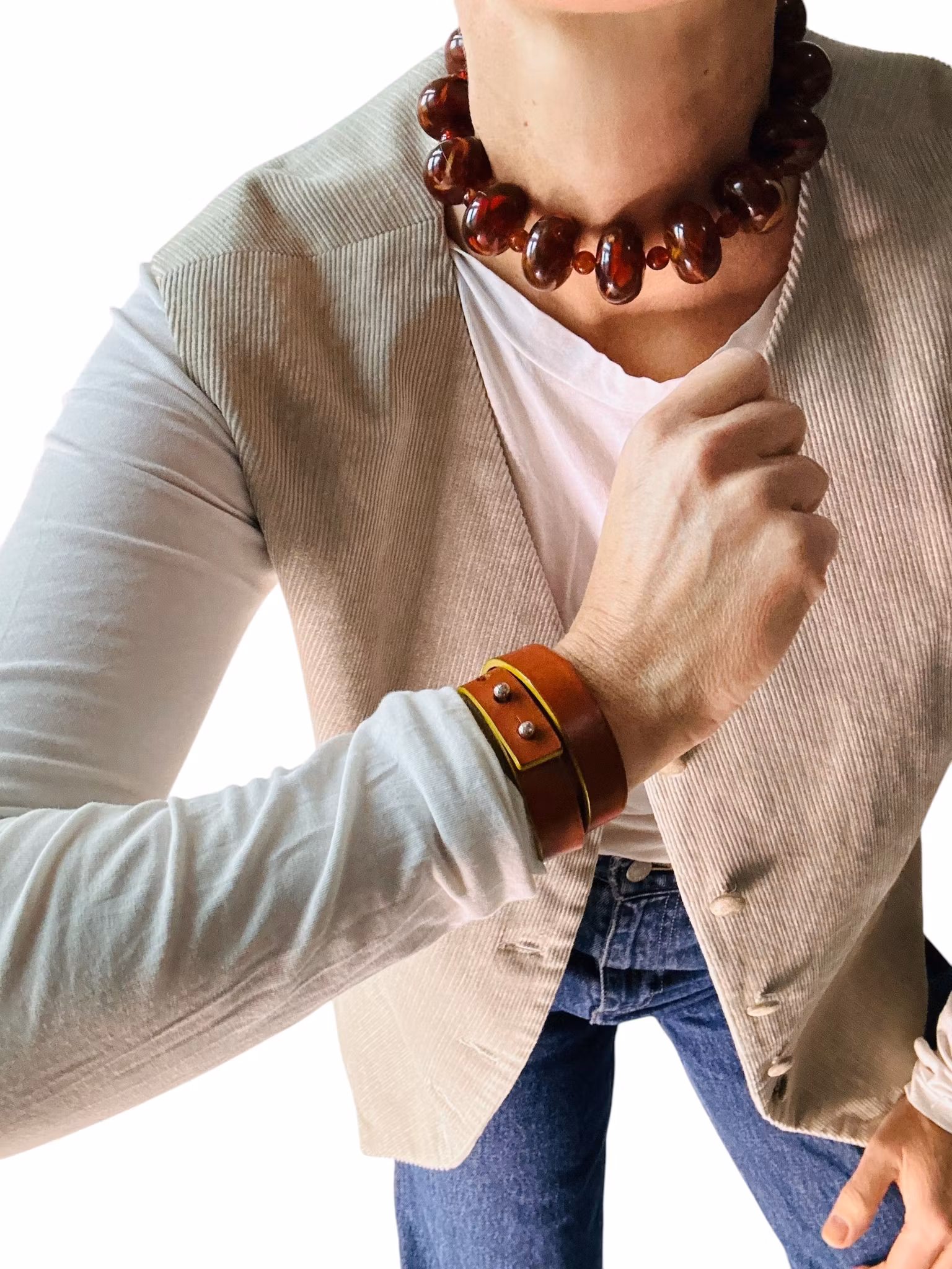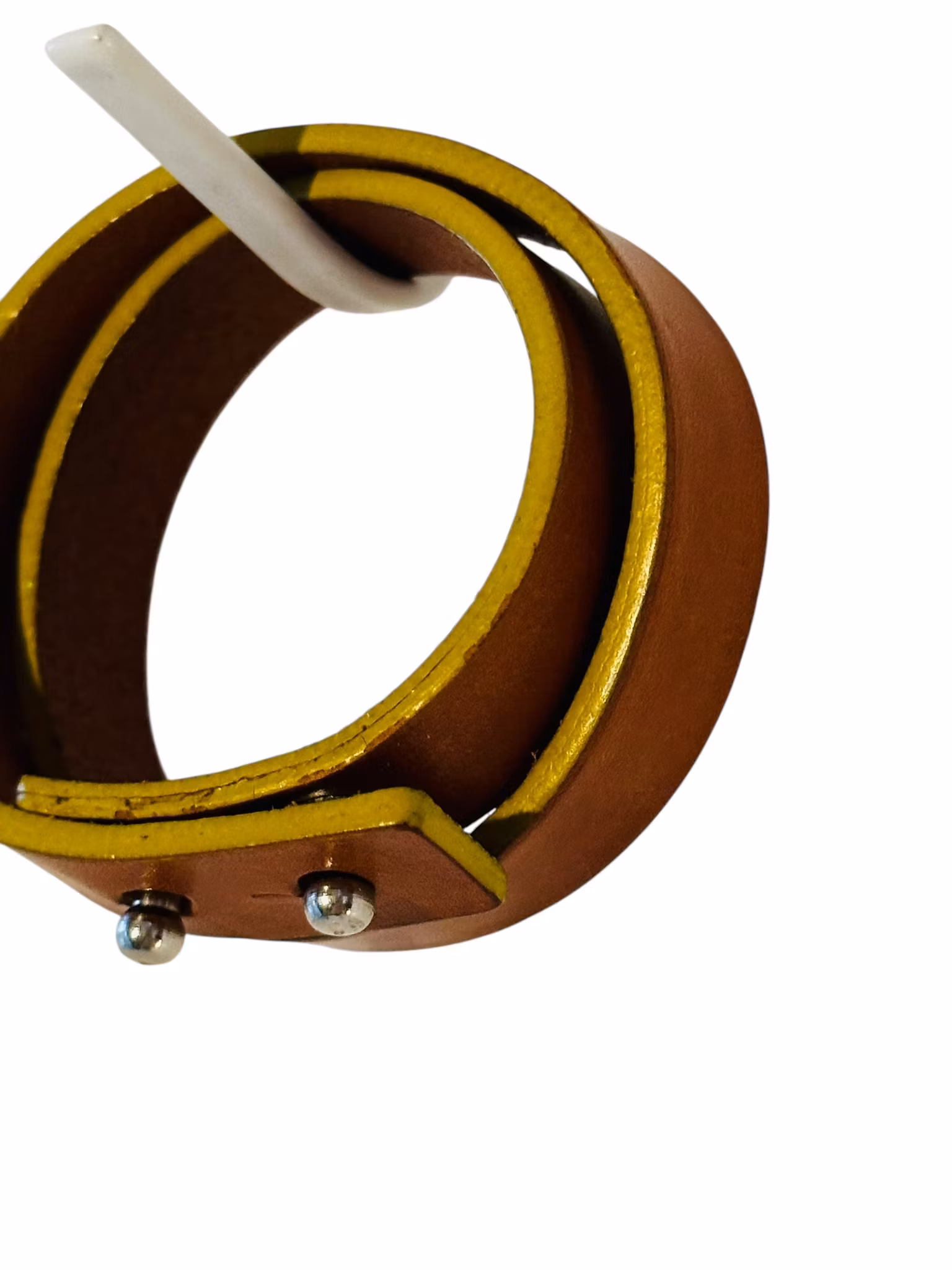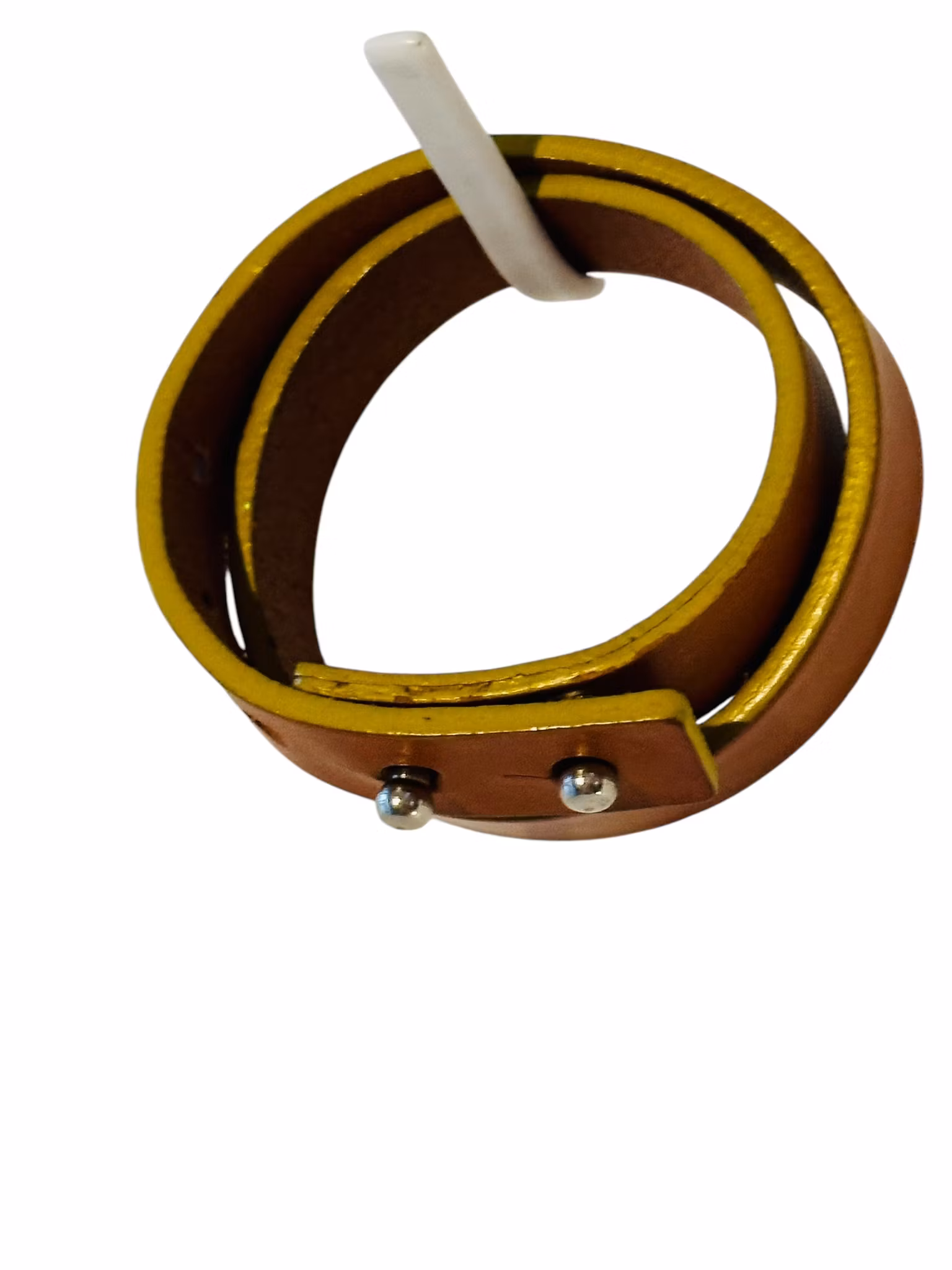 Beskrivning: Läderarmband från COS som är dubbelt med gula kanter.