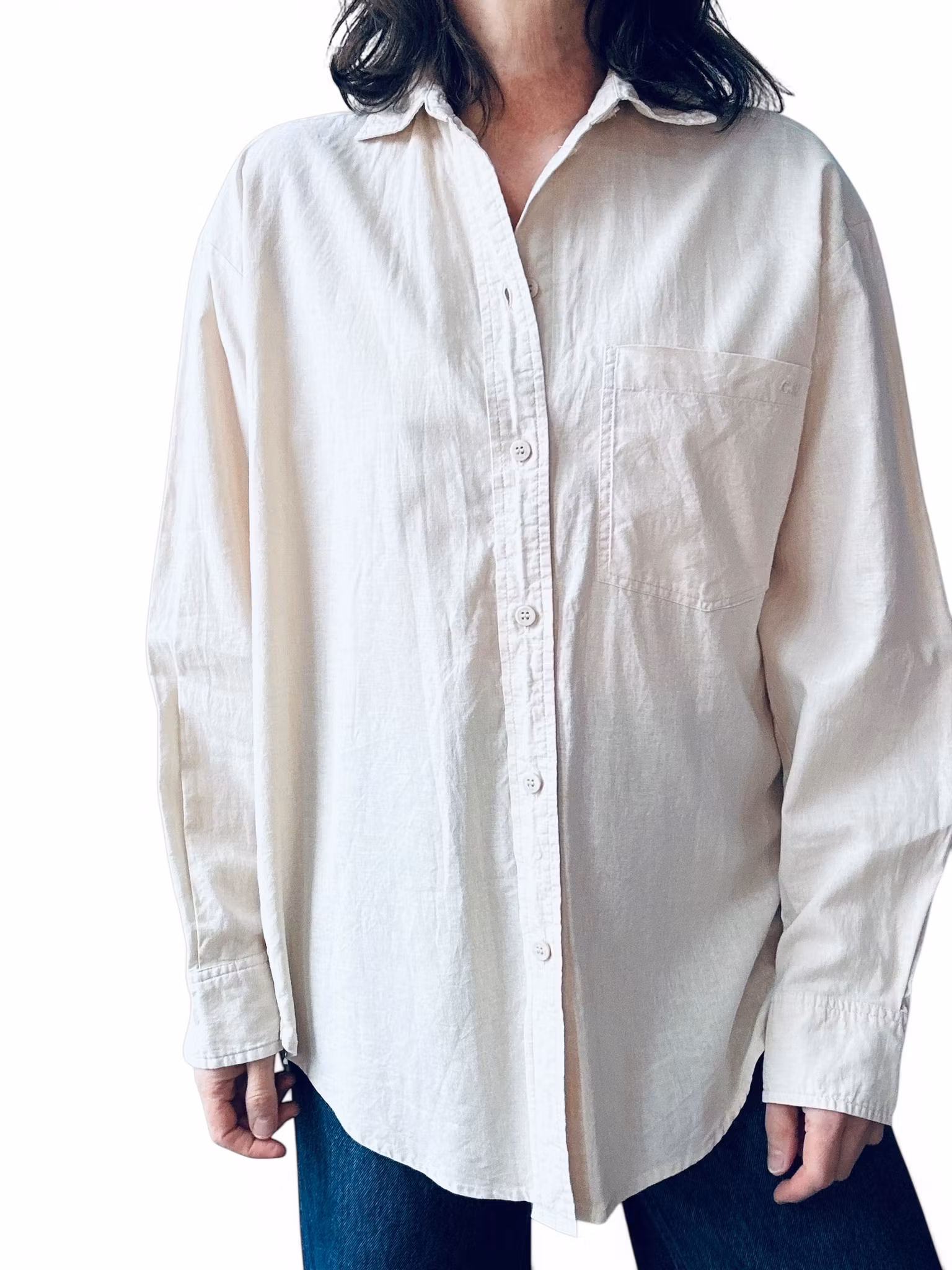 Beskrivning: Ljust beige skjorta från Carin Westers CW. Oversized modell som är fin både att ha stängd eller öppen som en overshirt.