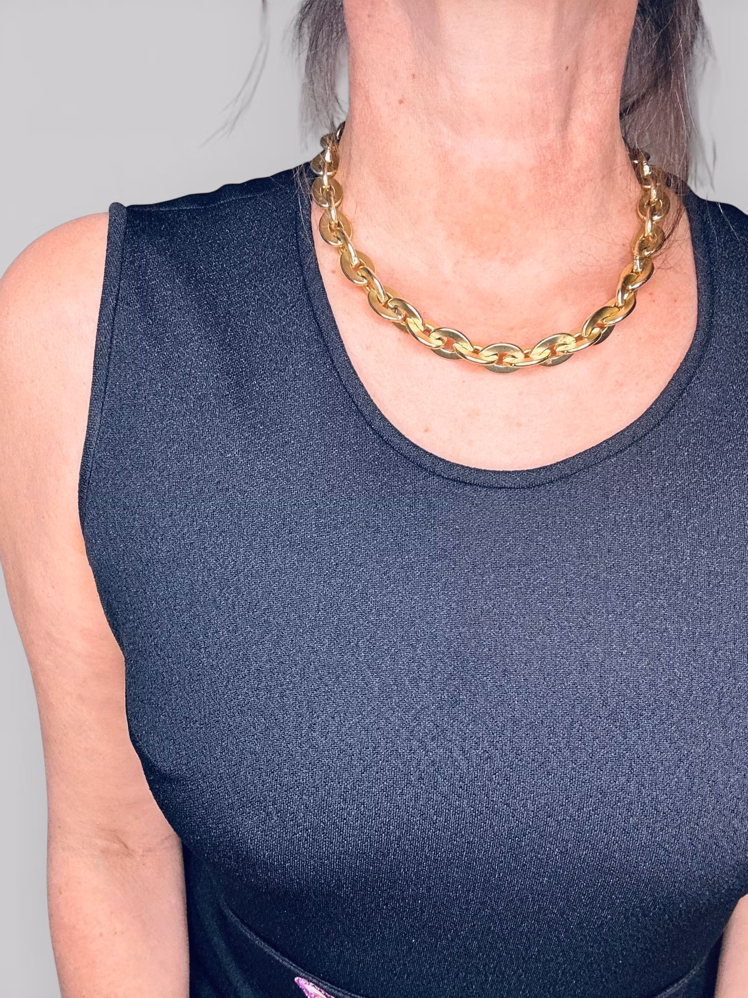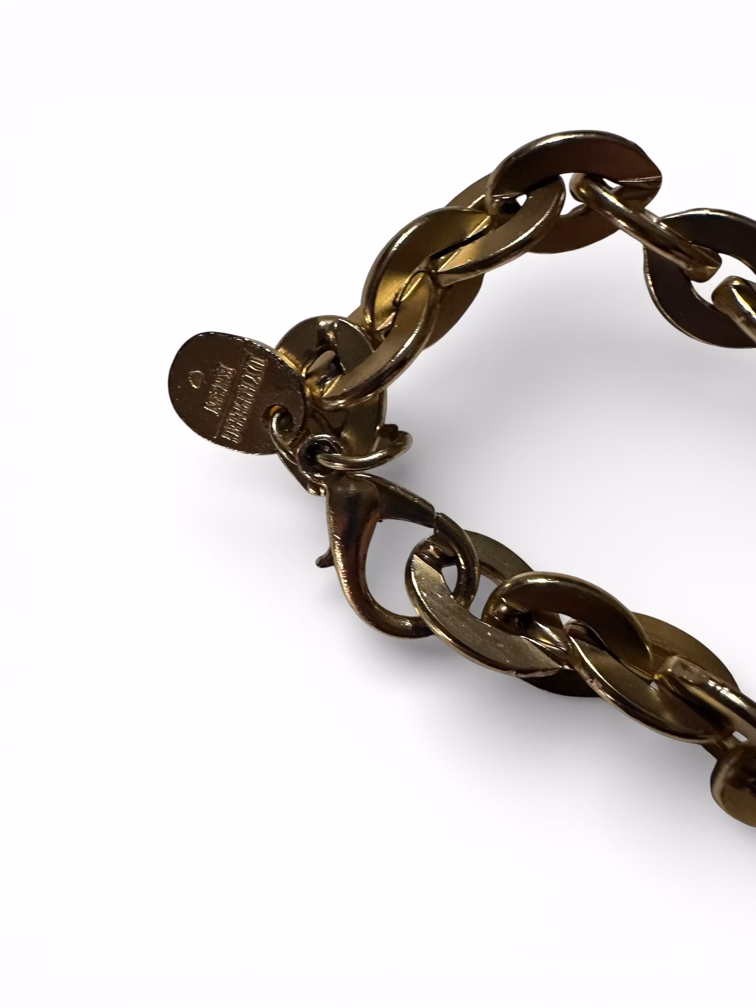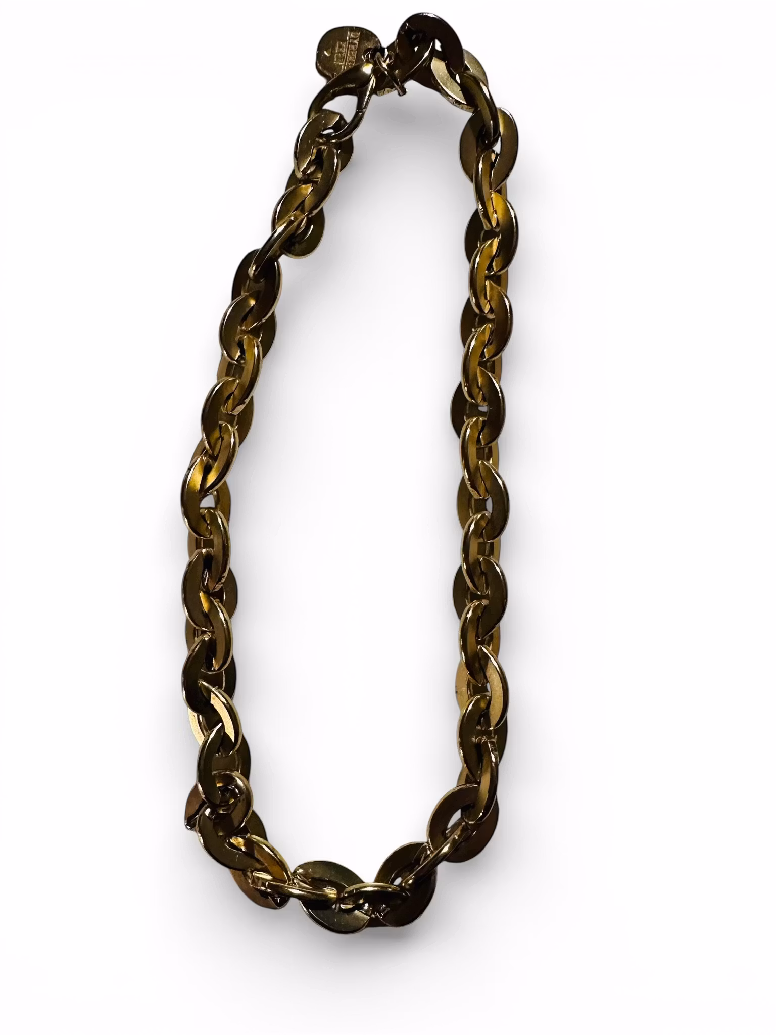 Beskrivning: Tjock länk i guldmetall från danska Dyrberg/Kern. Deras klassiska chunky-chain-modell med nypris ca 1000kr.