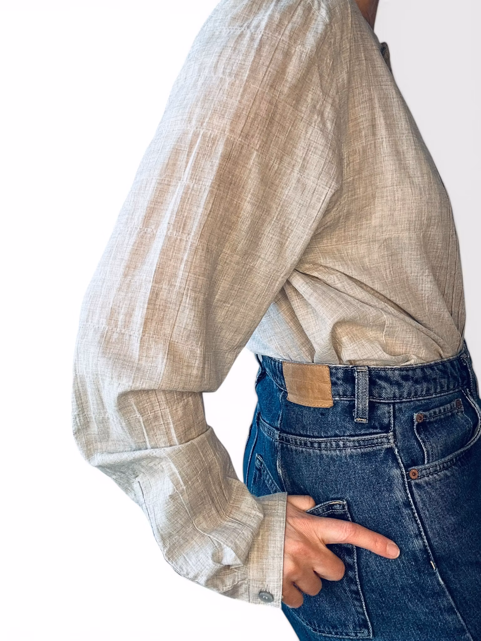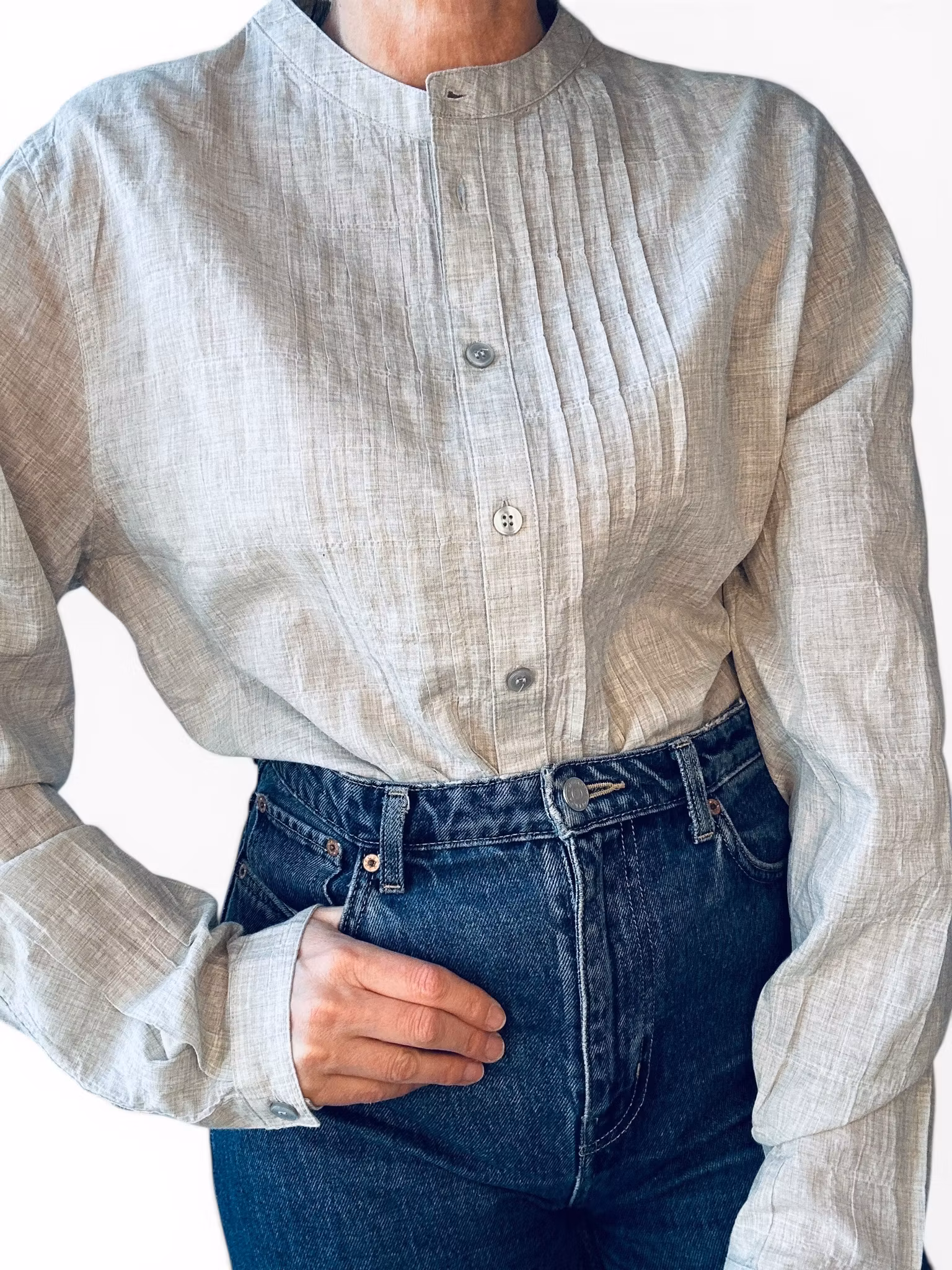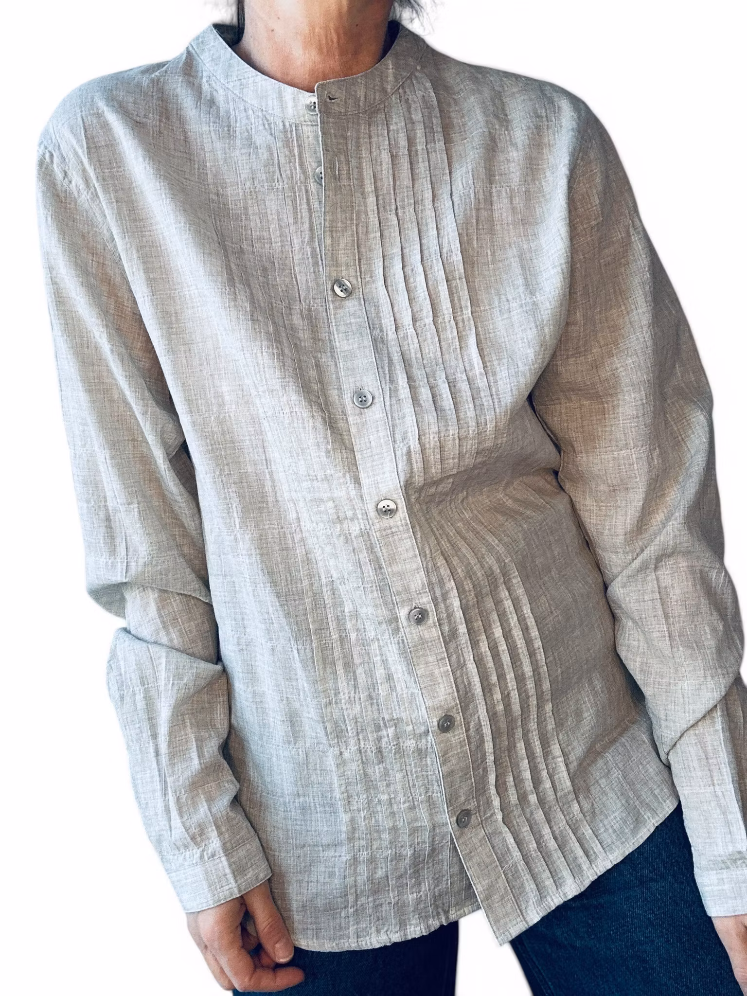 Beskrivning: En stilren och luftig skjorta från Fashion Against AIDS, ett samarbete med H&M som förenar mode och samhällsengagemang. Denna eleganta modell i en mjuk grå ton är tillverkad i ett lätt och behagligt bomullstyg, perfekt för en avslappnad men sofistikerad look. De dekorativa pintuck-vecken framtill och den nätta ståkragen ger plagget en tidlös och romantisk känsla med subtil vintageinspiration.