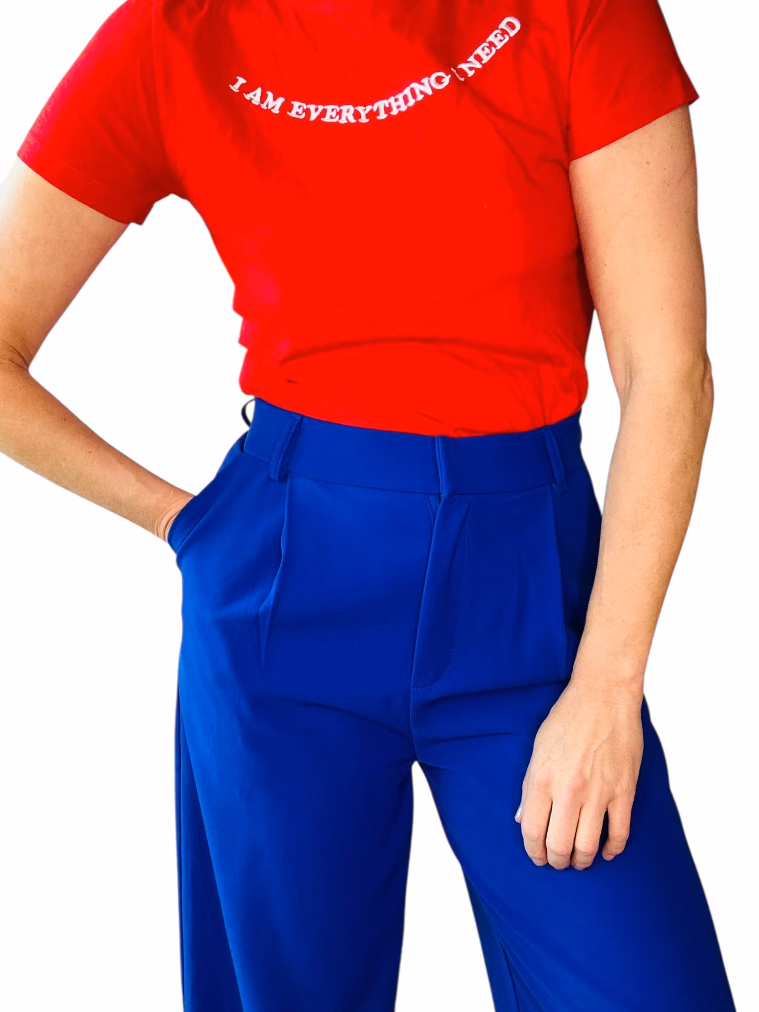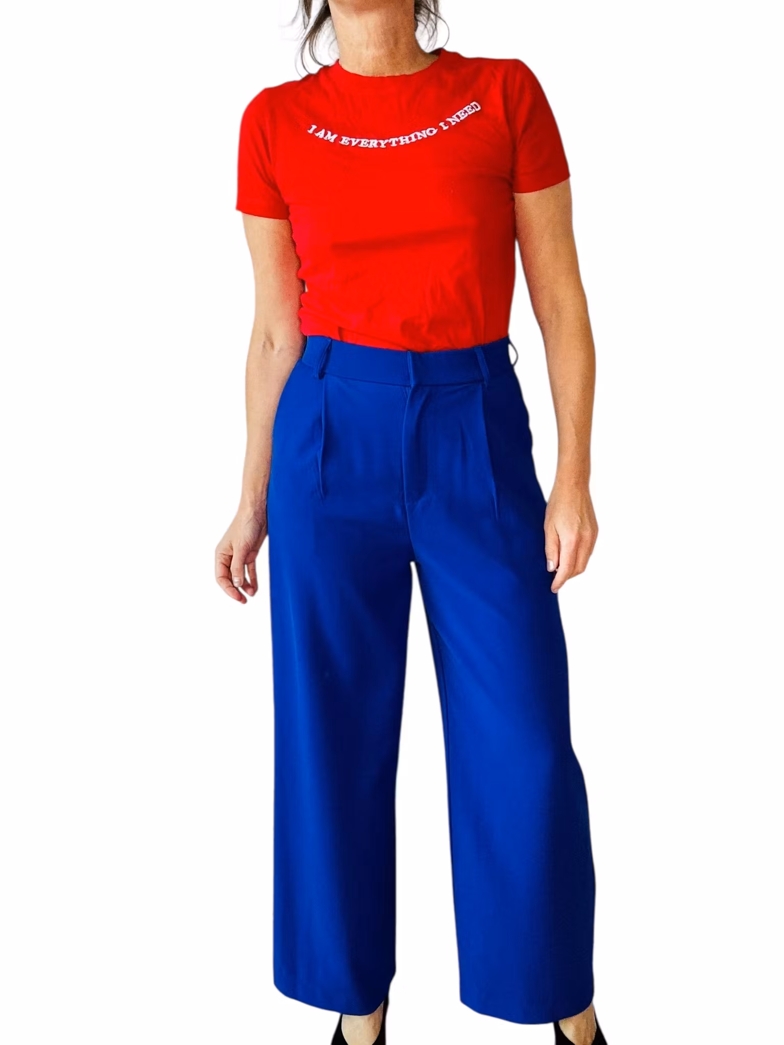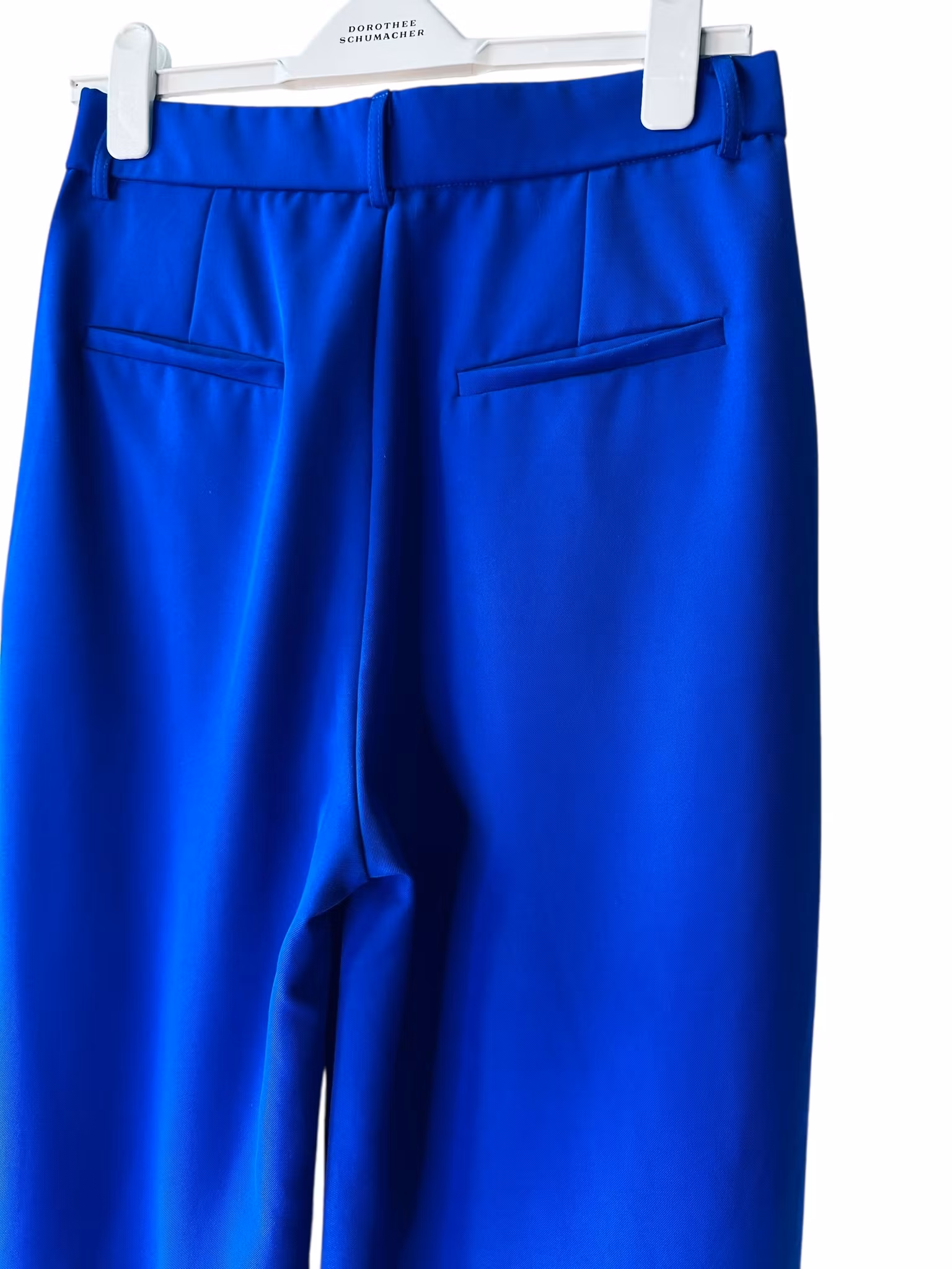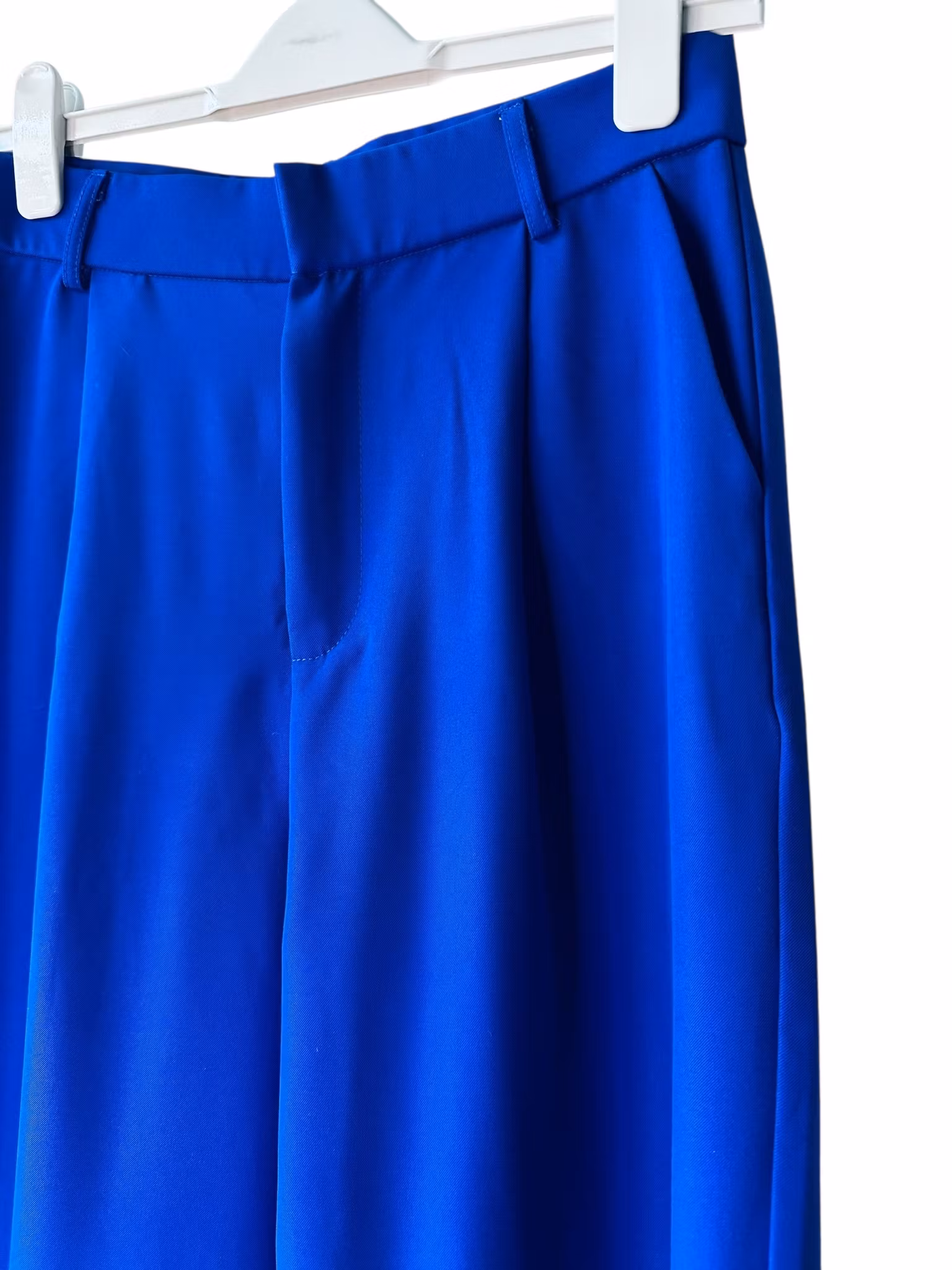Beskrivning: Kornblå kostymbyxor från Loavies. Skön tjocklek i tyget och i princip strykfria. Vida ben och hög midja.