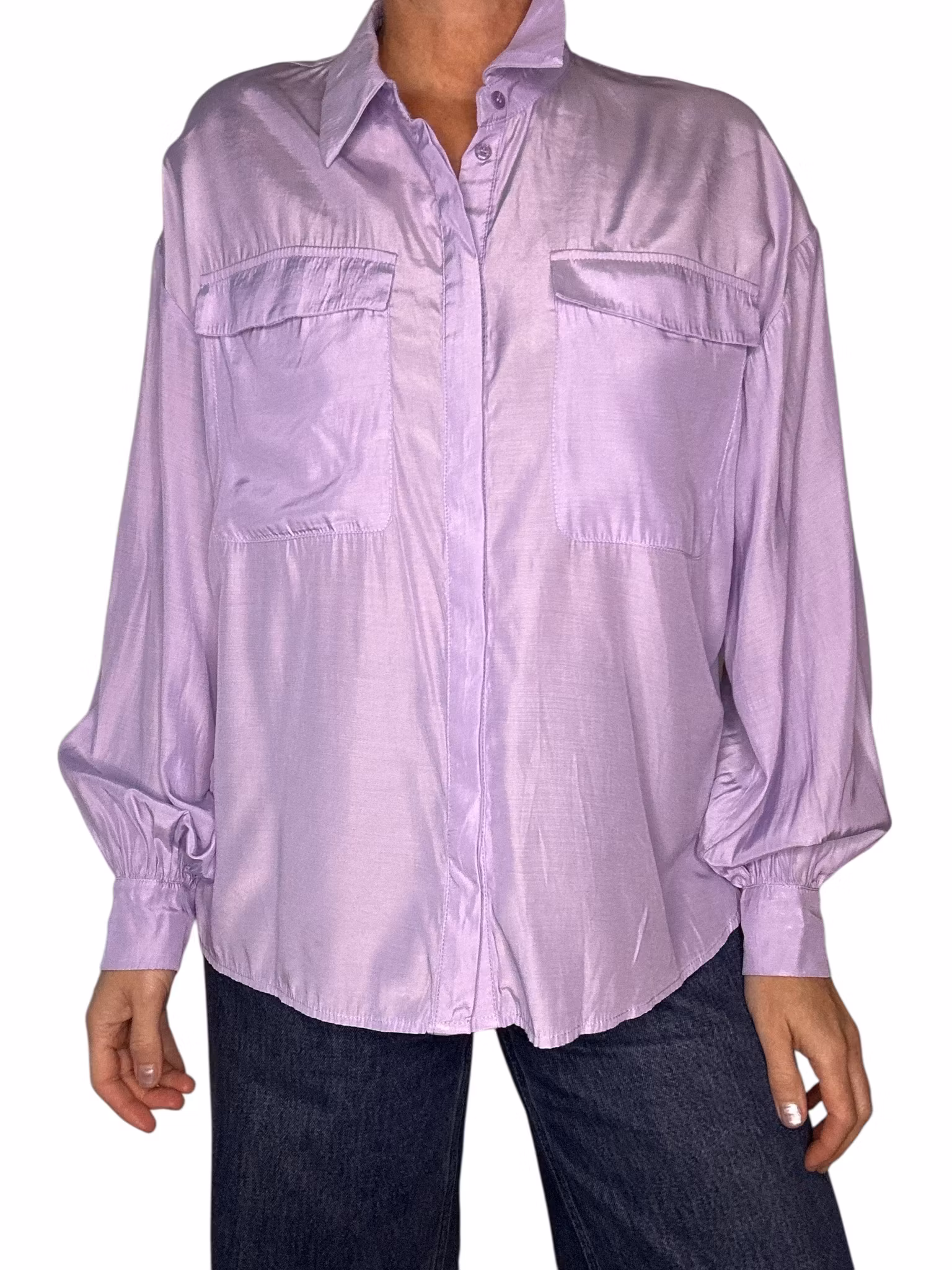 Beskrivning: Ljust lila skjorta från danska Moves. Boxig modell, dold knäppning och två bröstfickor med lock. Blank och bekväm viskosmix.