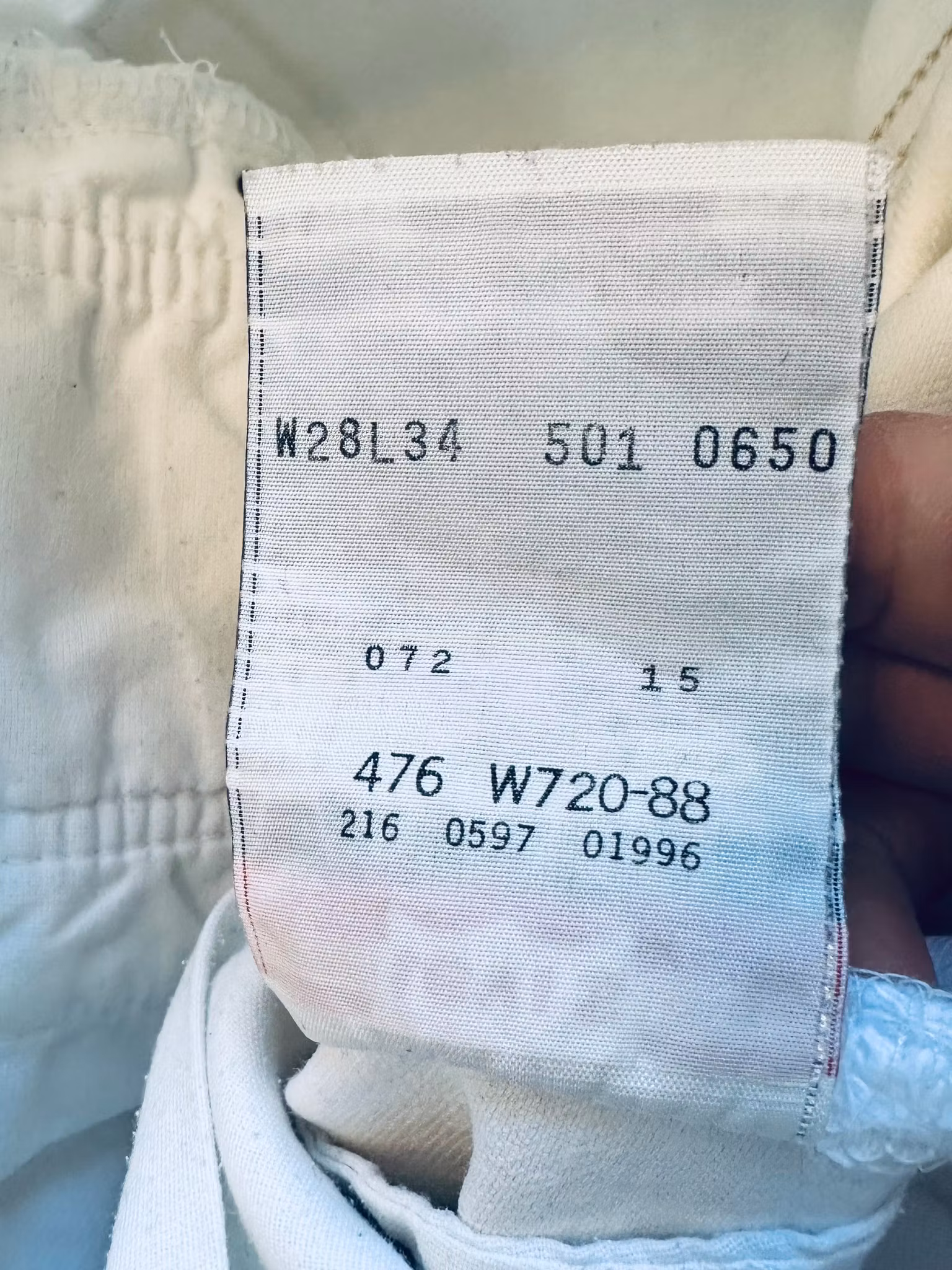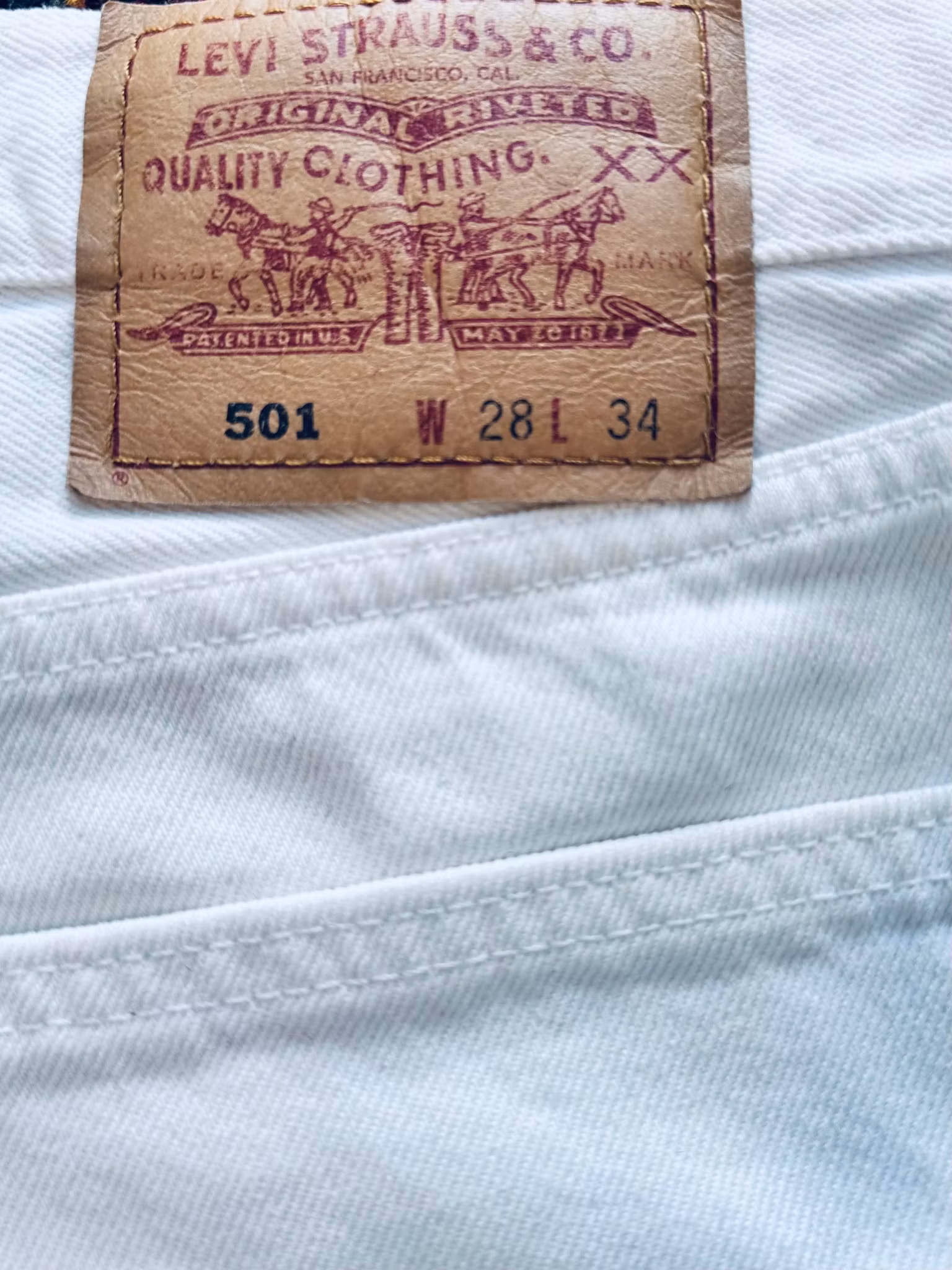 Beskrivning: Klassikern Levi’s 501, skick enligt bilder. Vintage från 1996 i vit denim – tillverkade i Kanada. Den ikoniska modellen har rak passform, knappgylf och en något högre midja som ger en tidlös, avslappnad silhuett. Den kraftiga bomullsdenimen har mjuknat fint över tid och fått en naturlig, lätt krämig ton som gör dem extra enkla att bära.