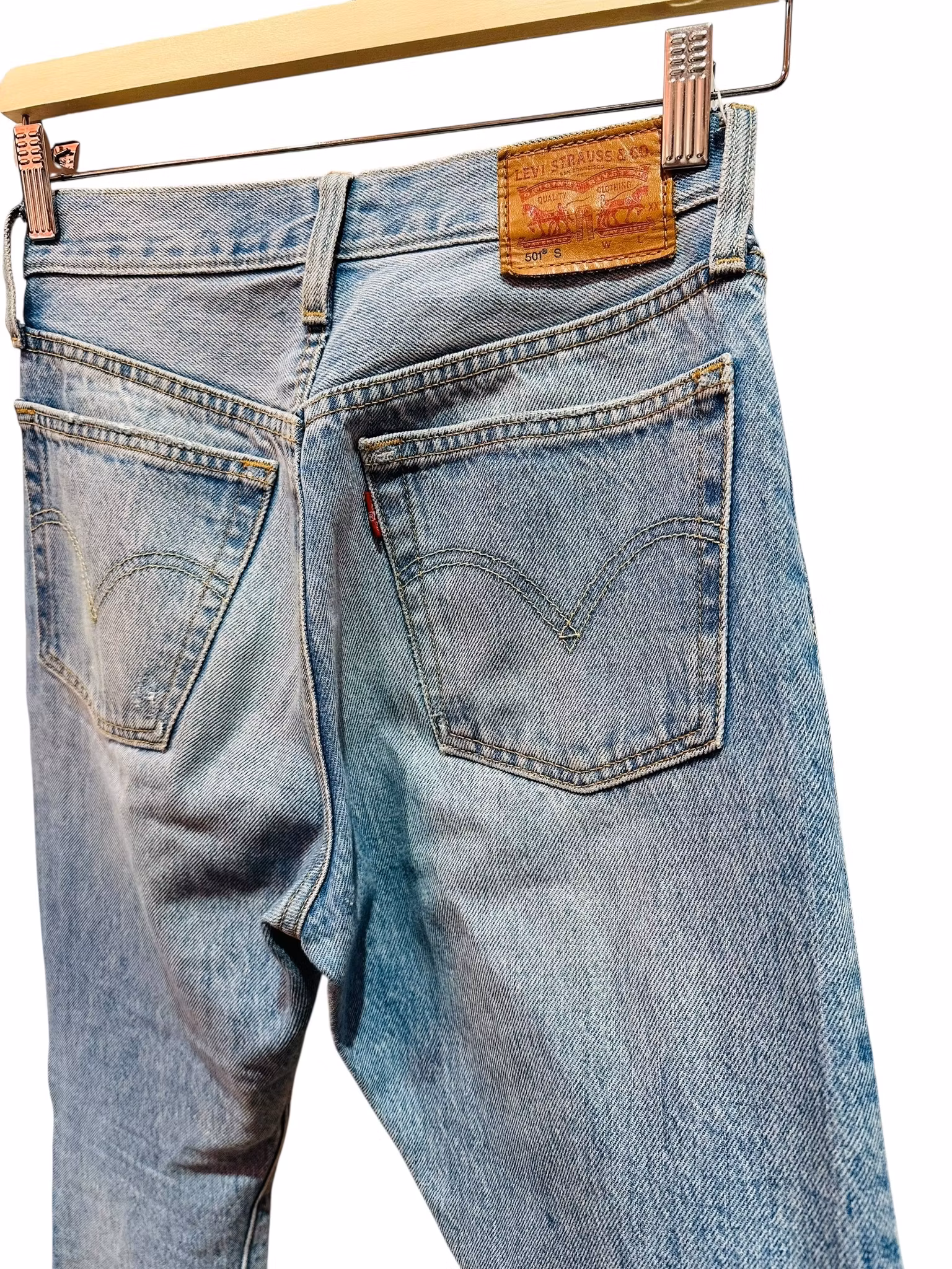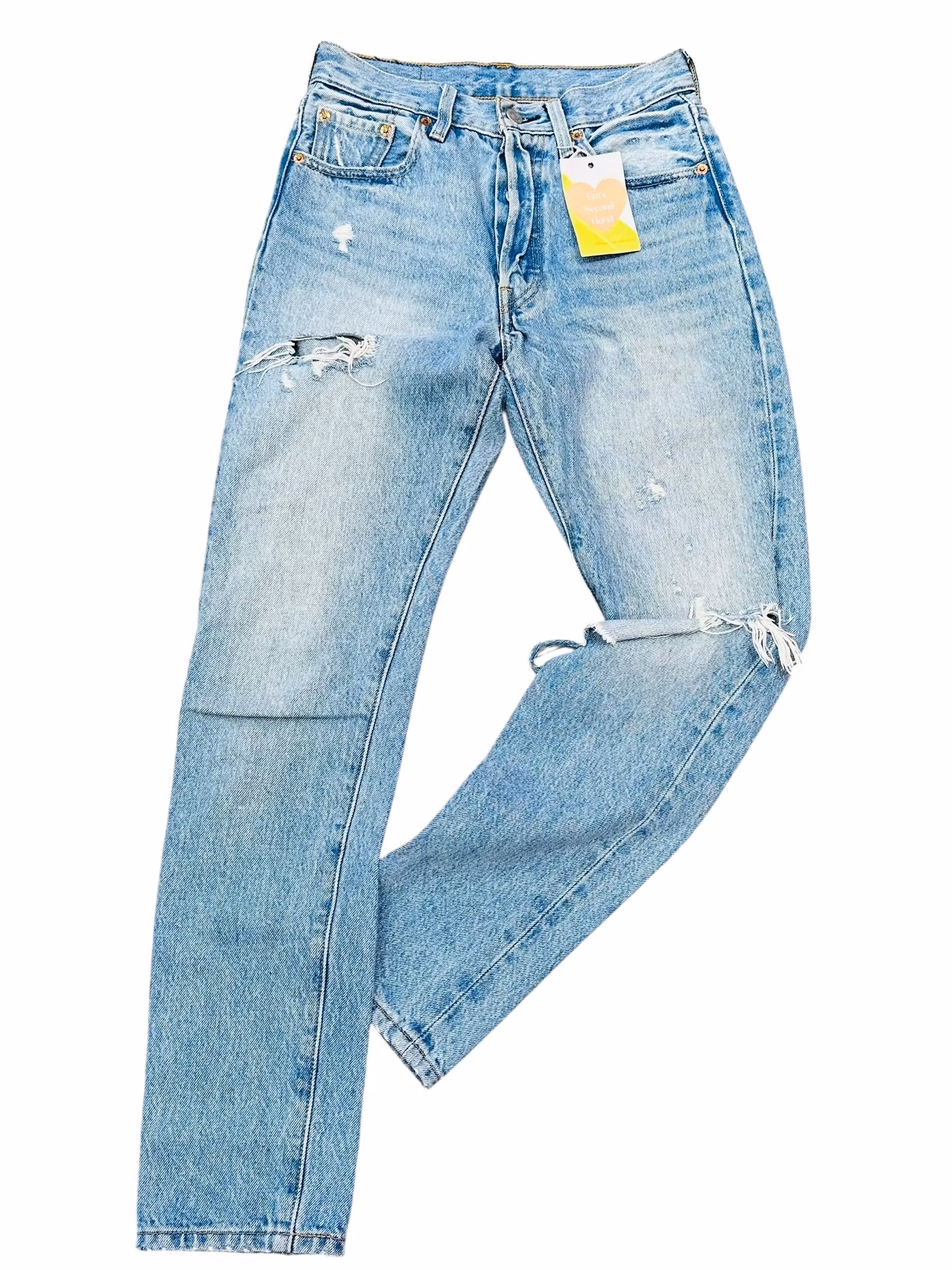 Beskrivning: Klassikern Levi’s 501, skick enligt bilder. Se mått och jämför med dina egna jeans för bäst passform då storlekarna varierar beroende på om jeansen är vintage, nya eller ngn specialmodell. De här är 501S som är en smalare variant av originalet.