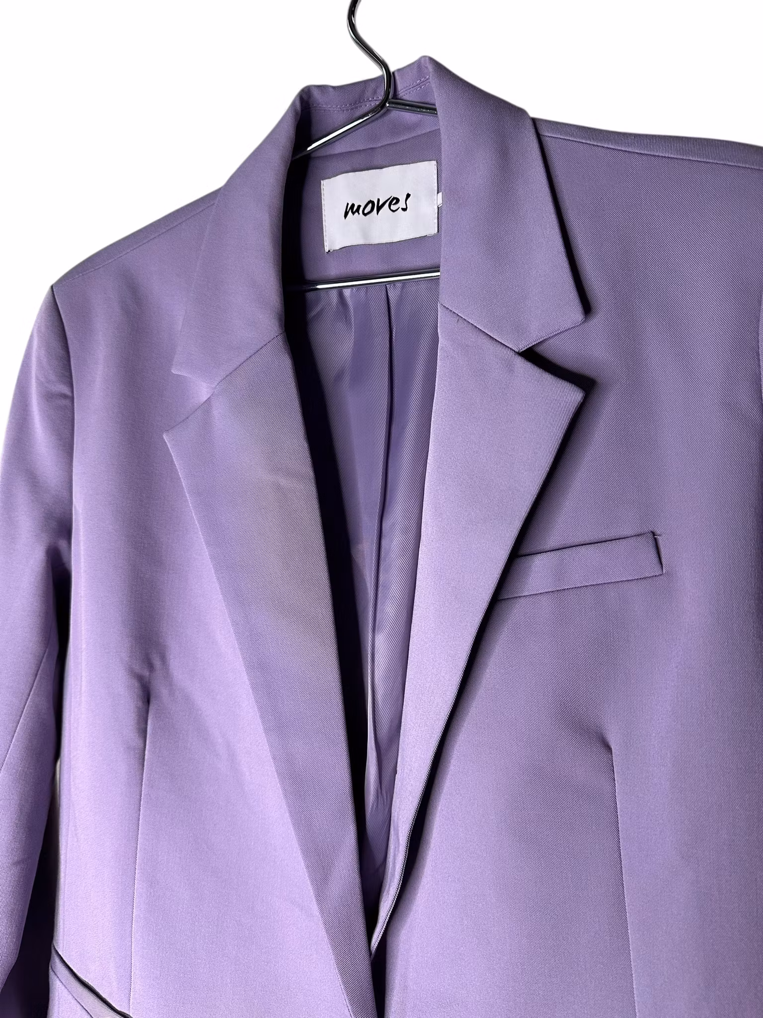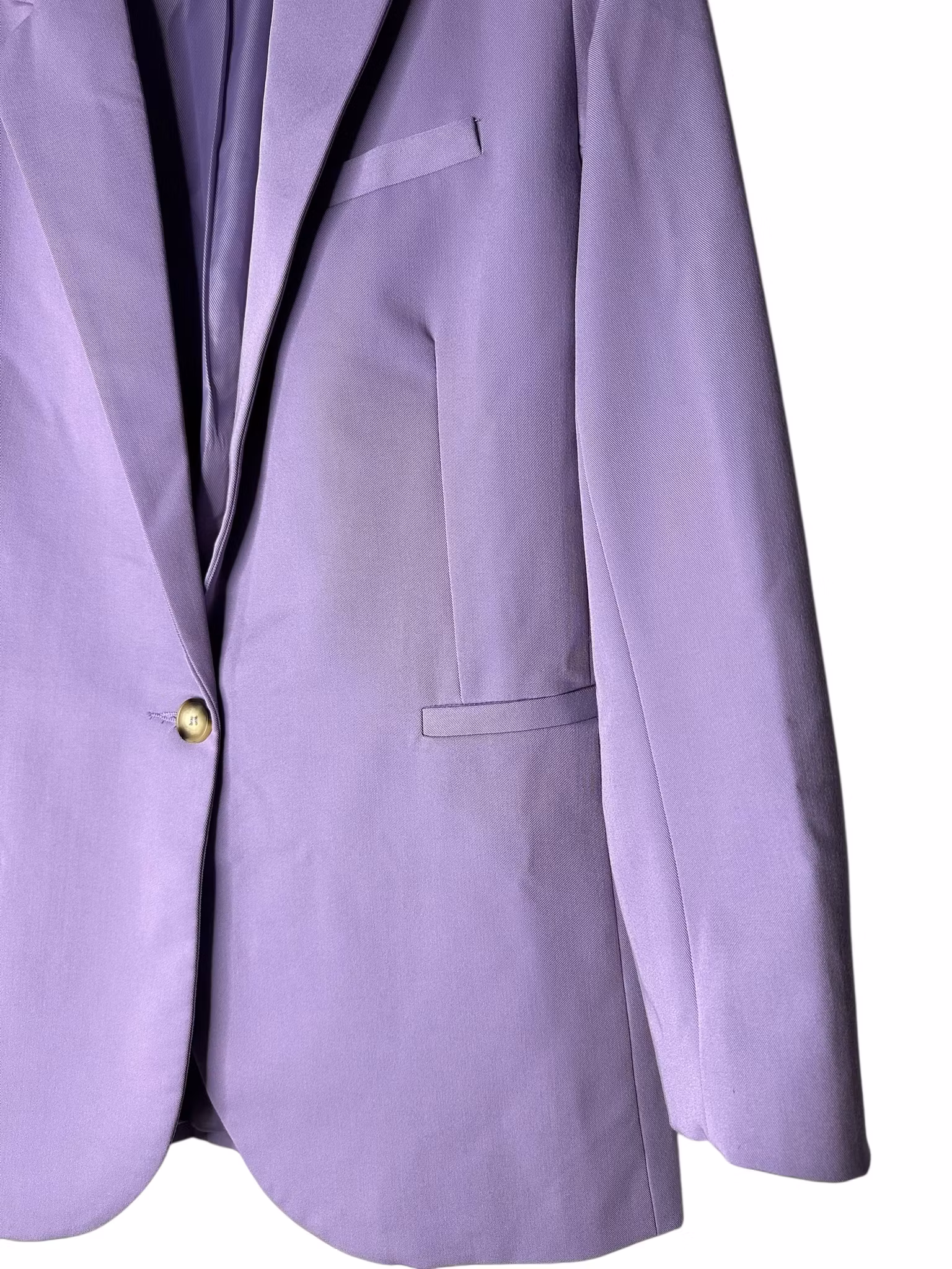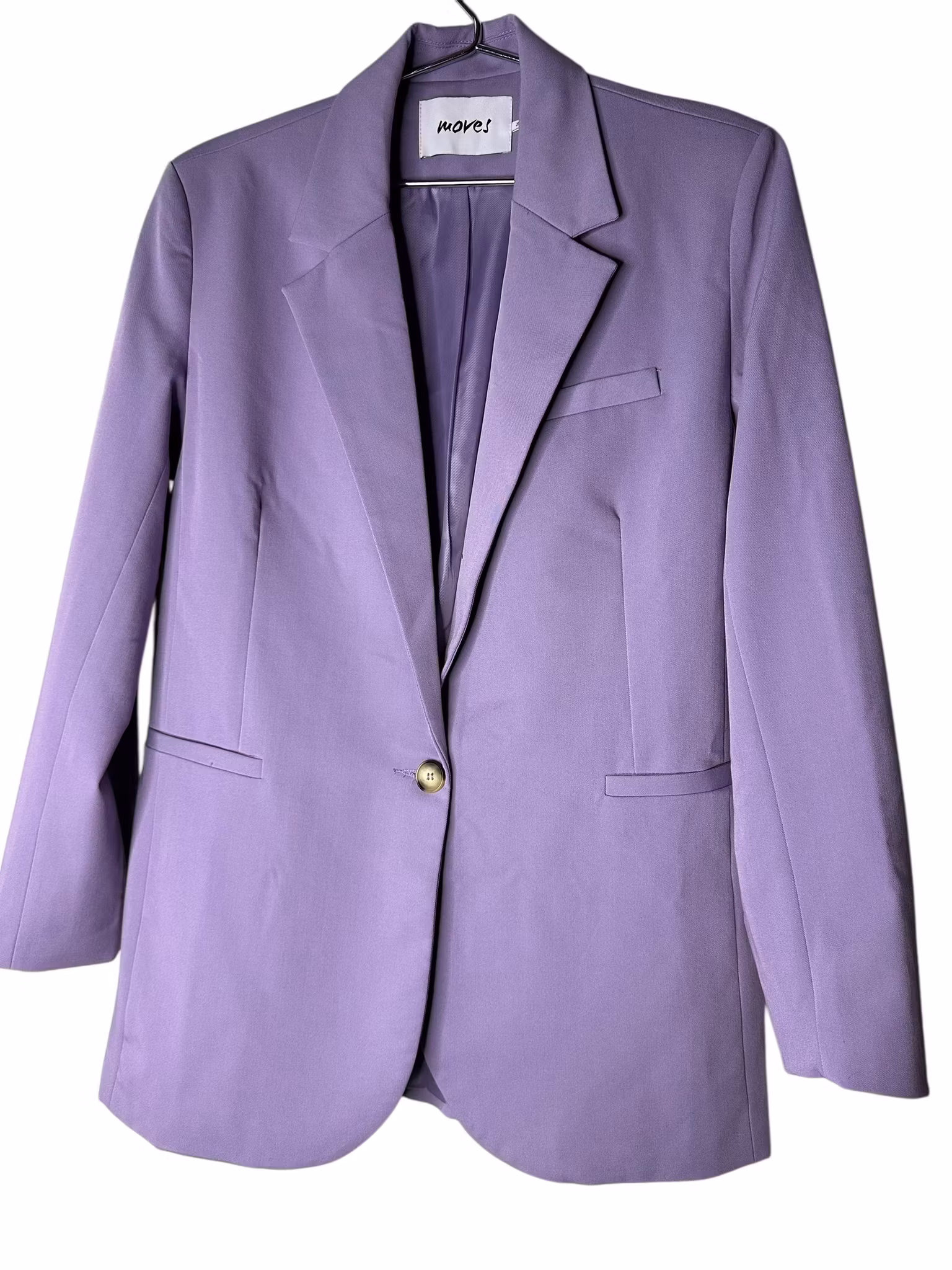 Beskrivning: En kavaj i klassiskt snitt i härlig lavendellila. Fickor i sidorna, lätt intagen i midjan och stängning med två knappar fram. Helfodrad. Från danska Moves.