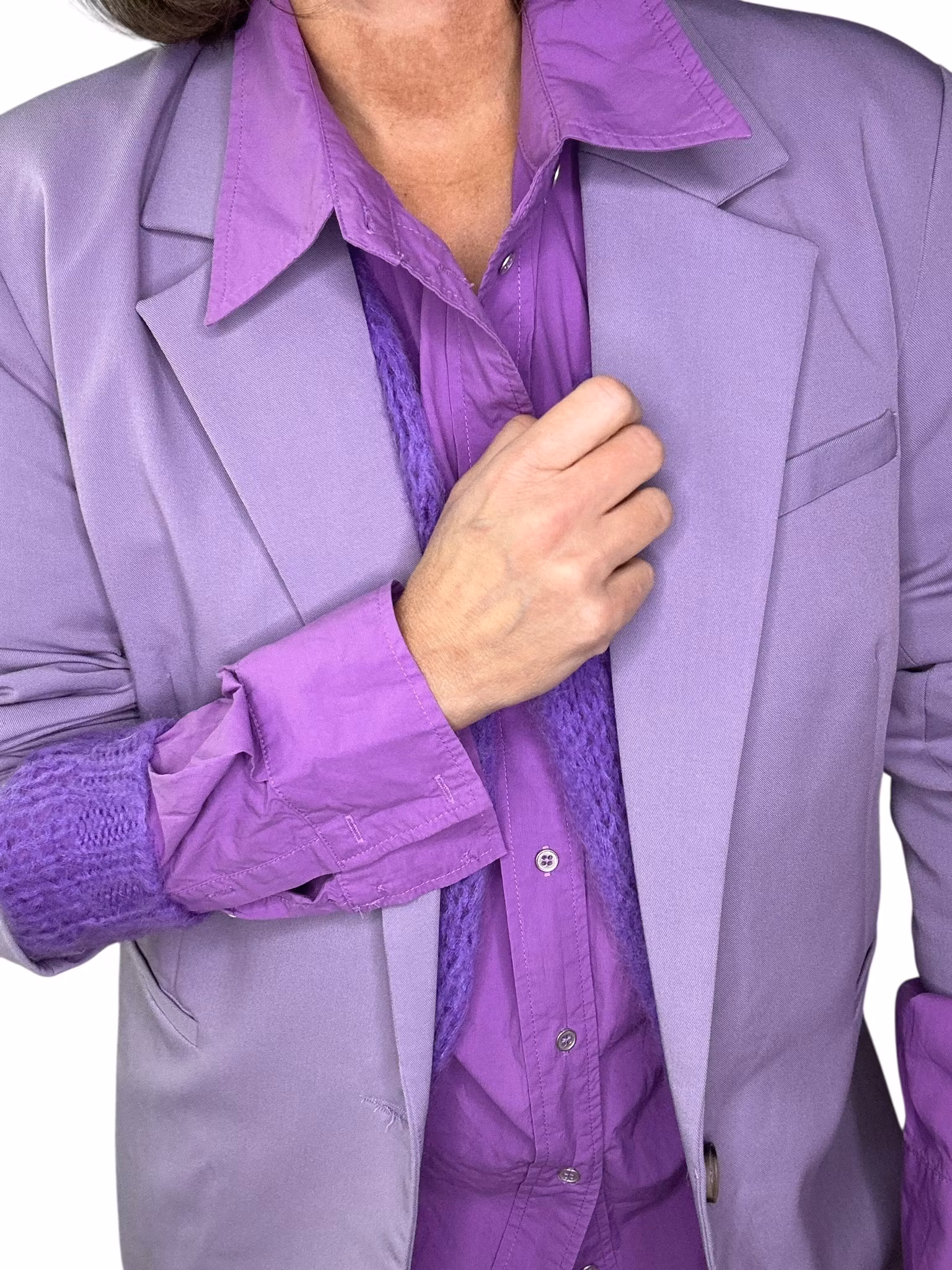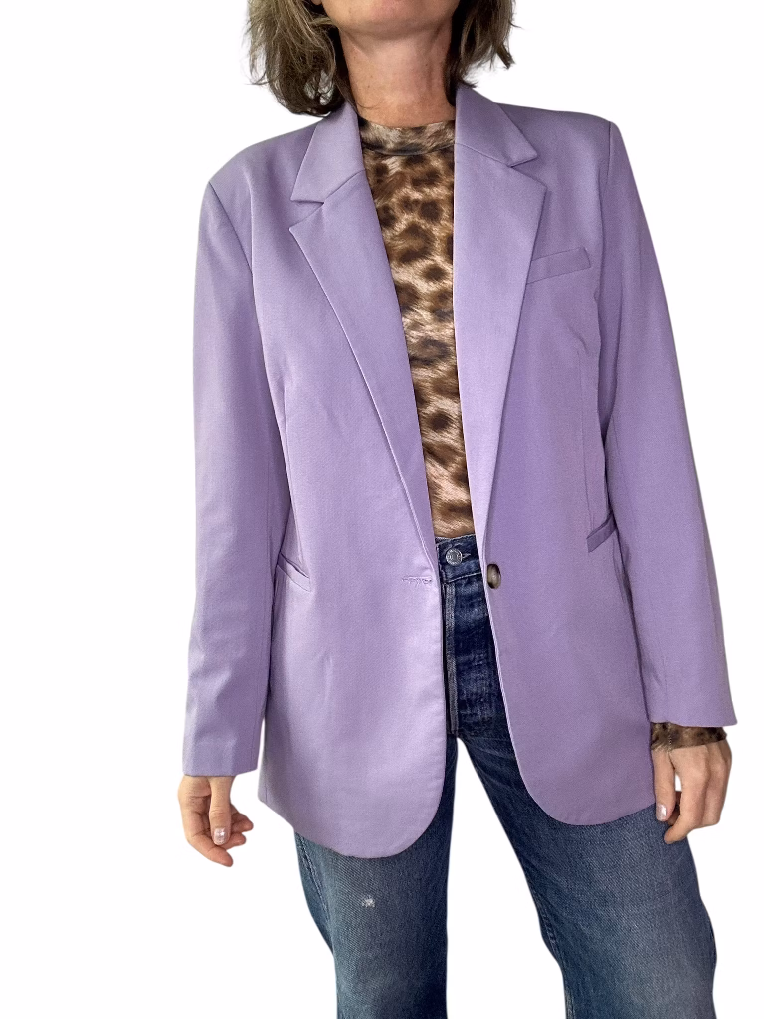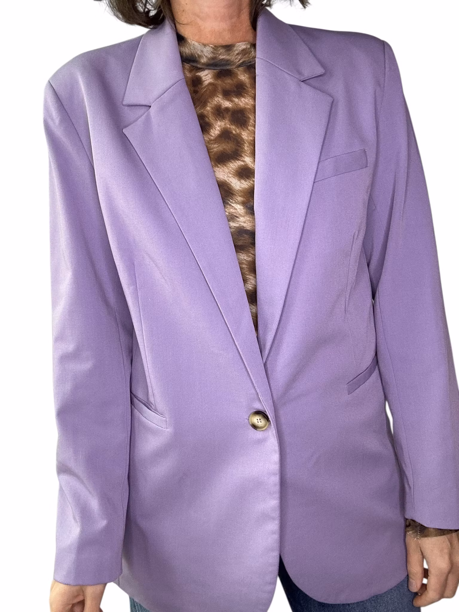 Beskrivning: En kavaj i klassiskt snitt i härlig lavendellila. Fickor i sidorna, lätt intagen i midjan och stängning med två knappar fram. Helfodrad. Från danska Moves.