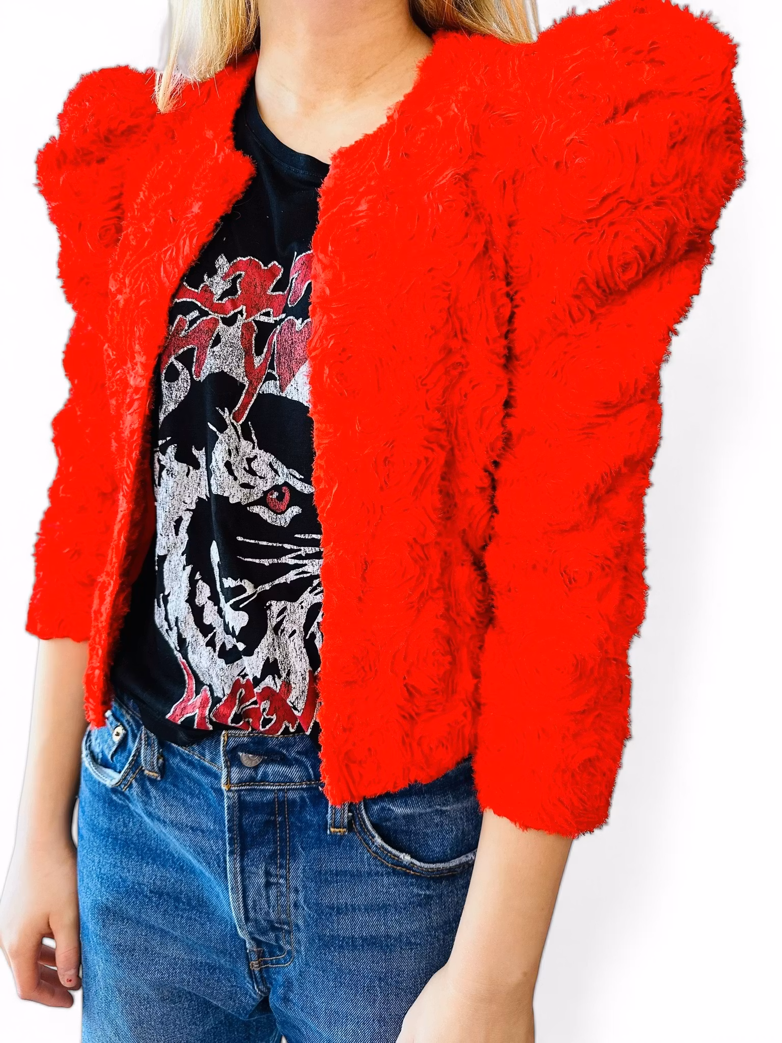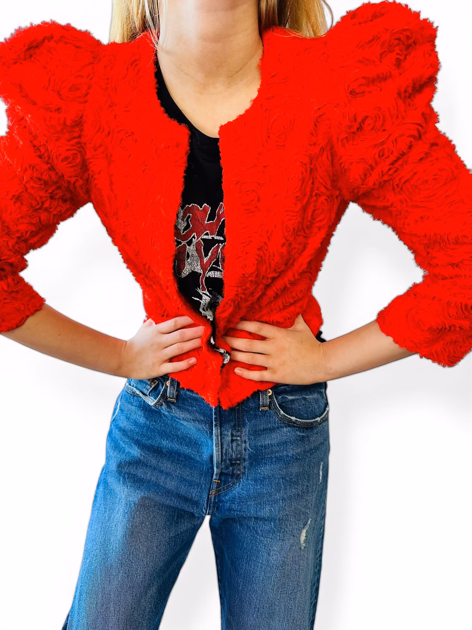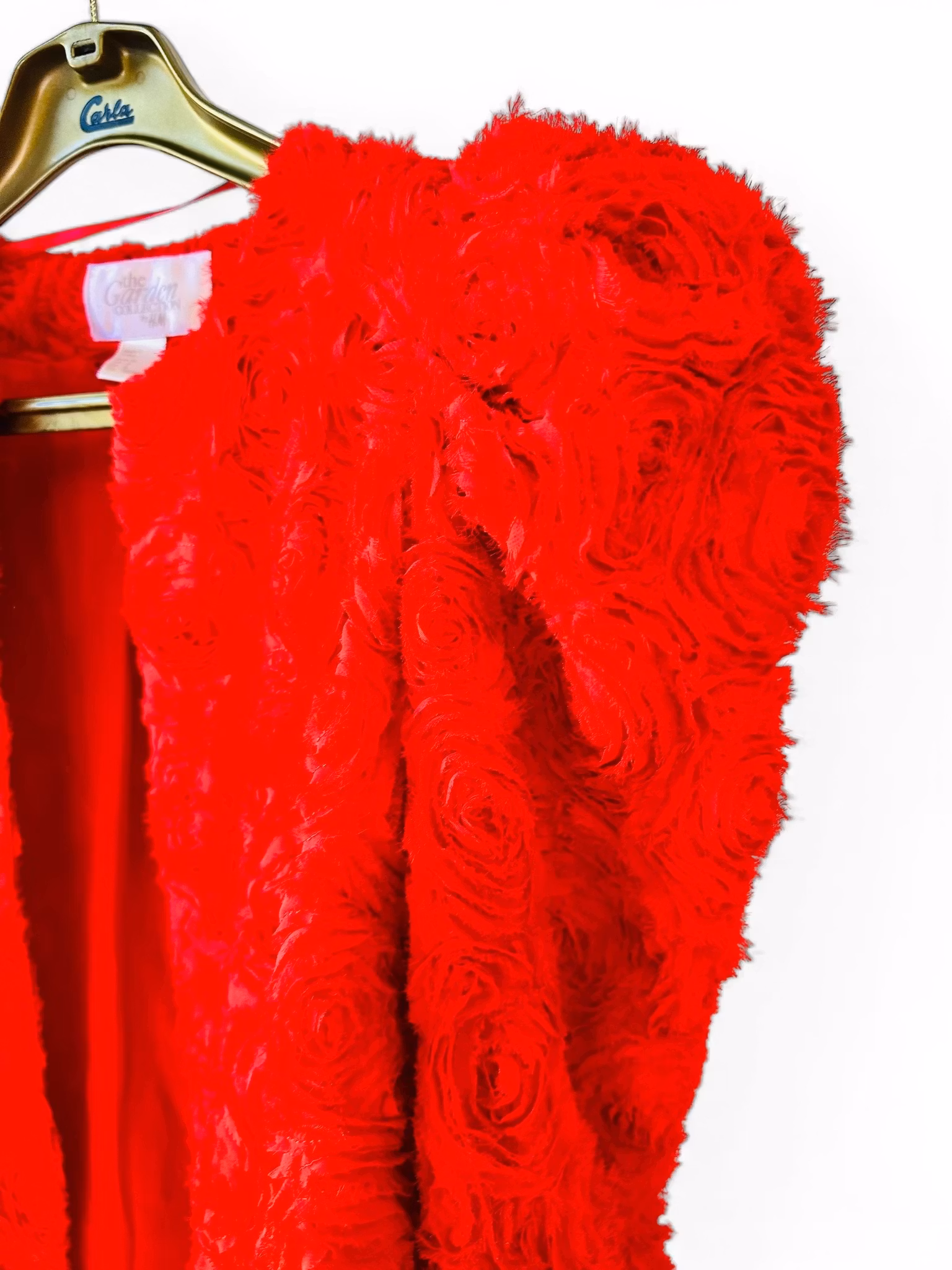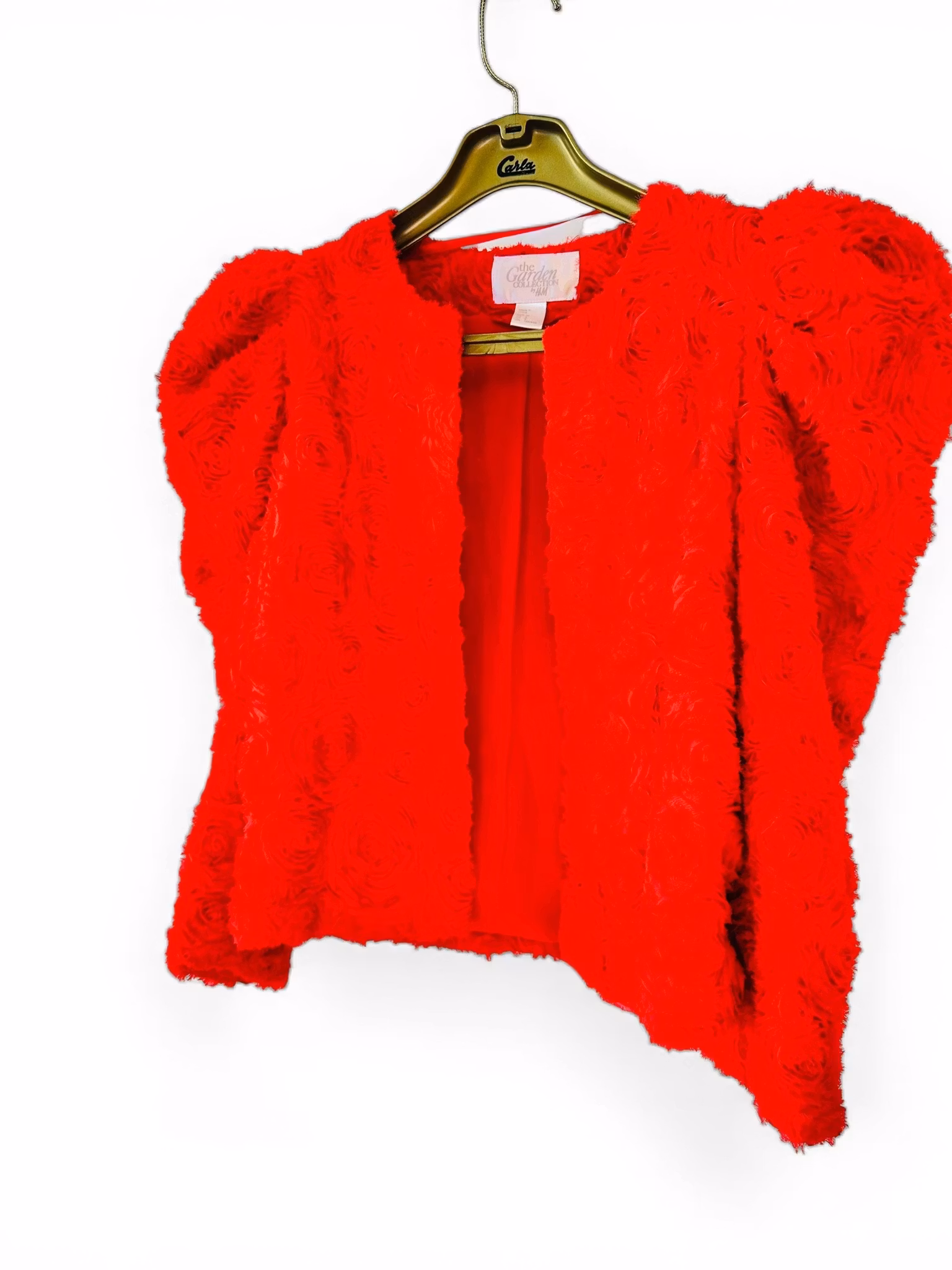 En riktig wow-jacka i intensivt vallmoröd nyans från The Garden Collection by H&M. Ett feminint och lekfullt plagg med textur, rörelse och personlighet – perfekt när du vill synas med stil.