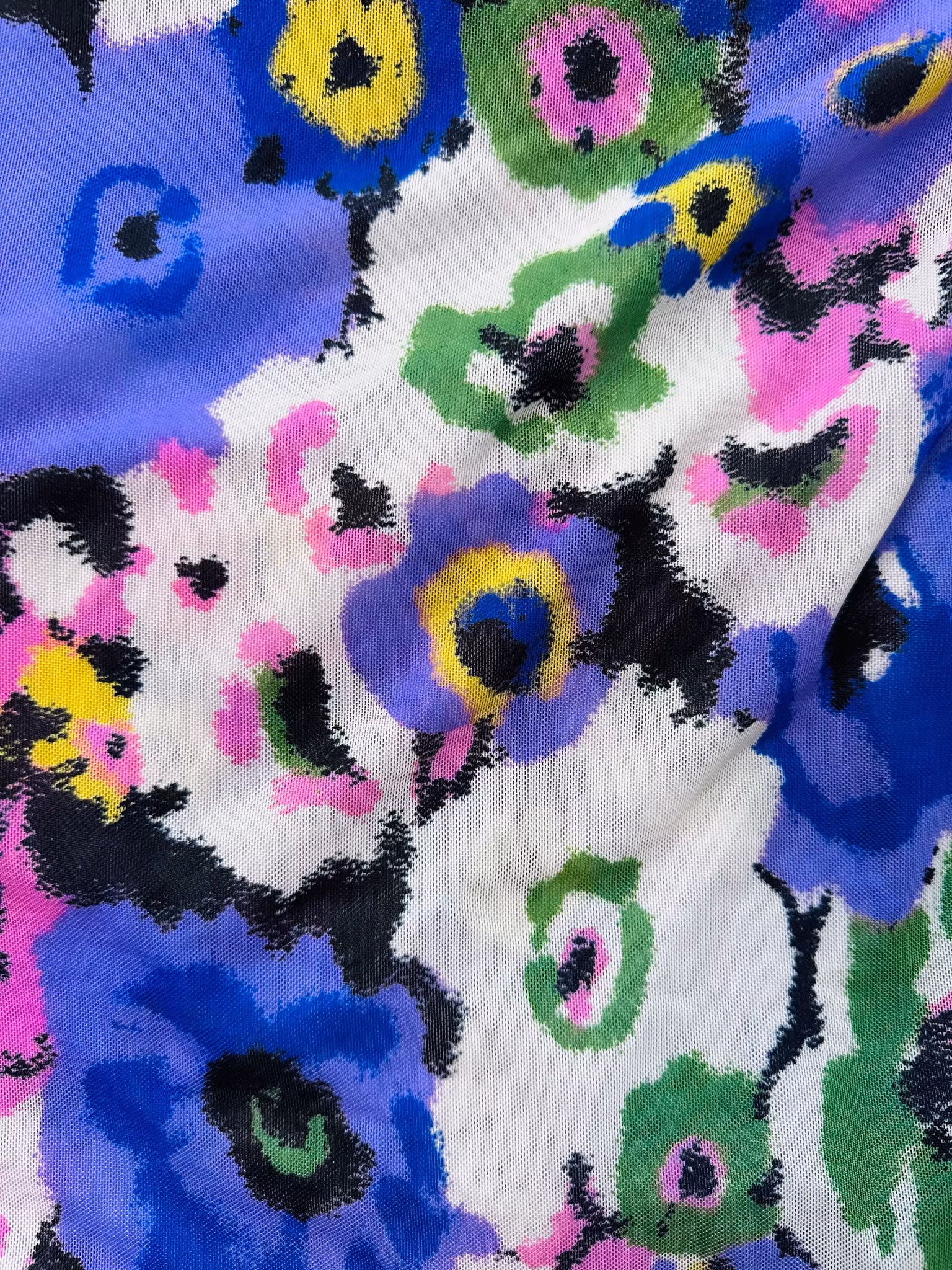 Beskrivning: Meshtröjan - så användbar under allt! Varje outfit blir roligare med en mesh och på vintern är den en lifesaver som mellanlager. Kul prints är en bonus och denna lilablommiga kommer från danska Liberté Essentiel och har rund hals och råa, vågiga kanter och är stretchig så flexibel i storlek.