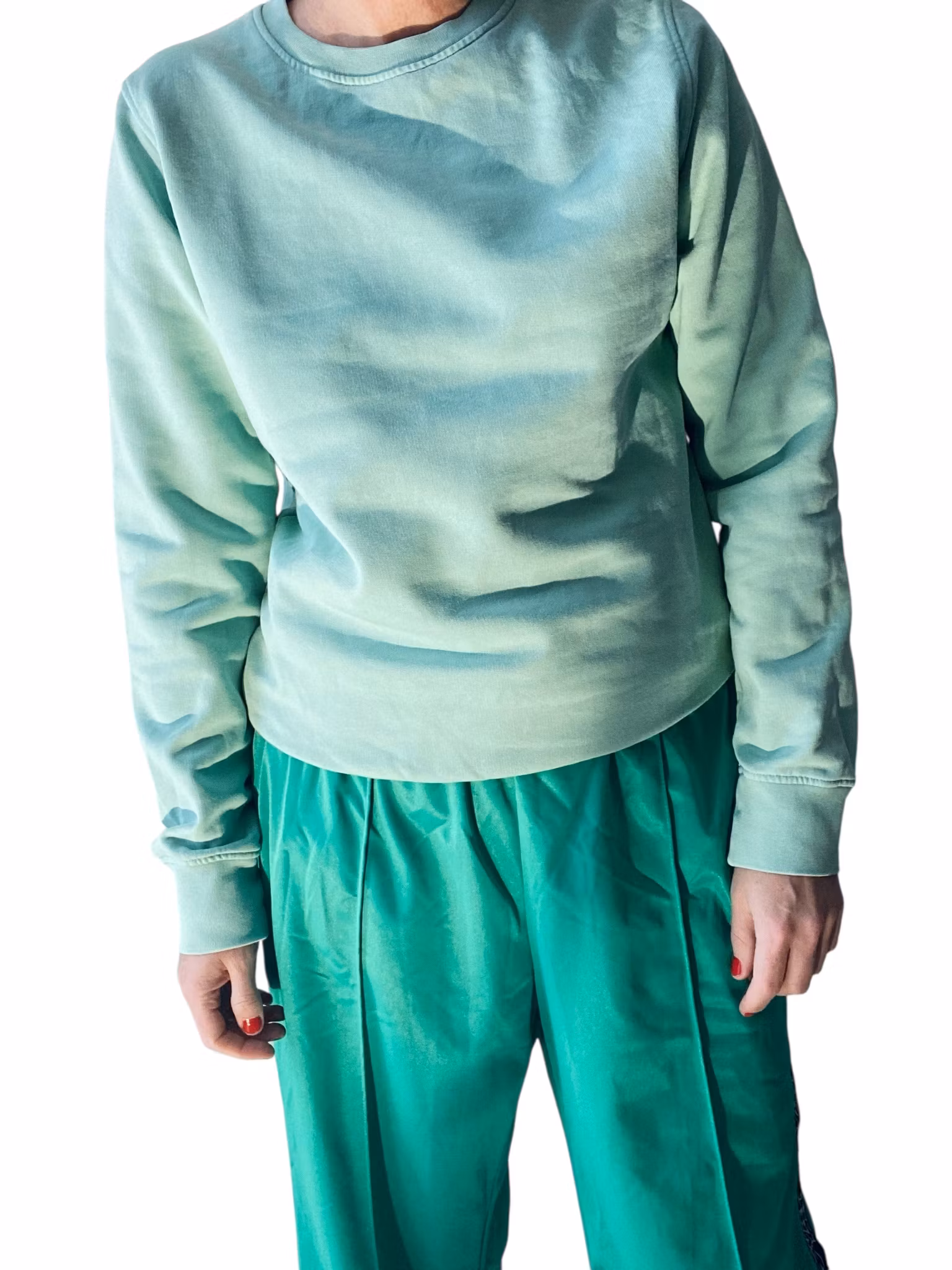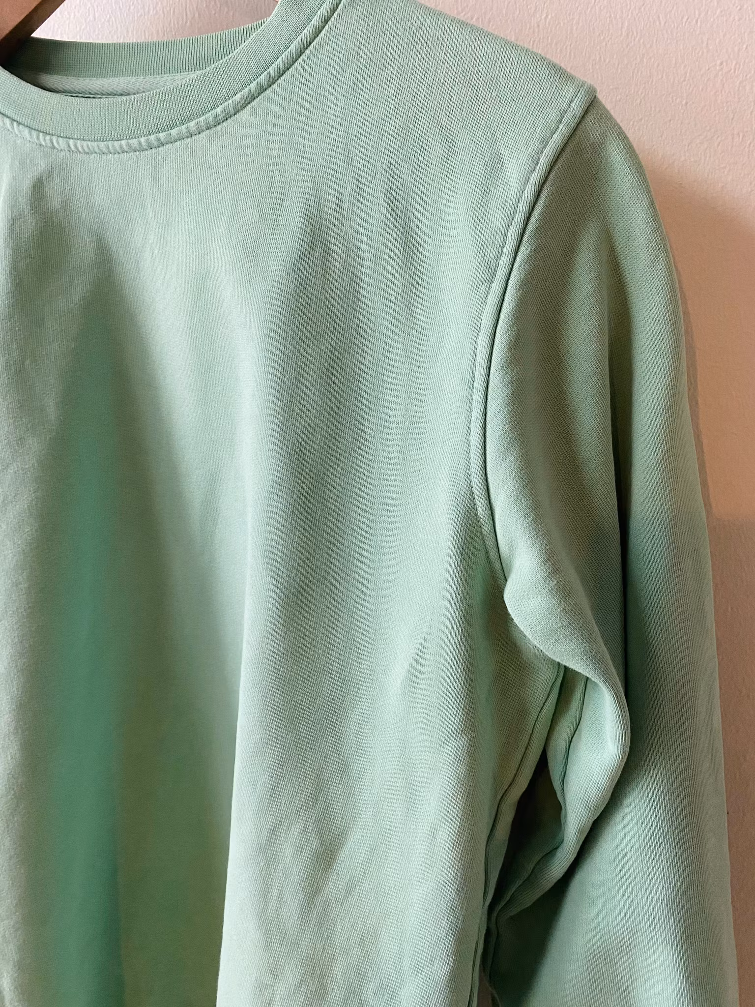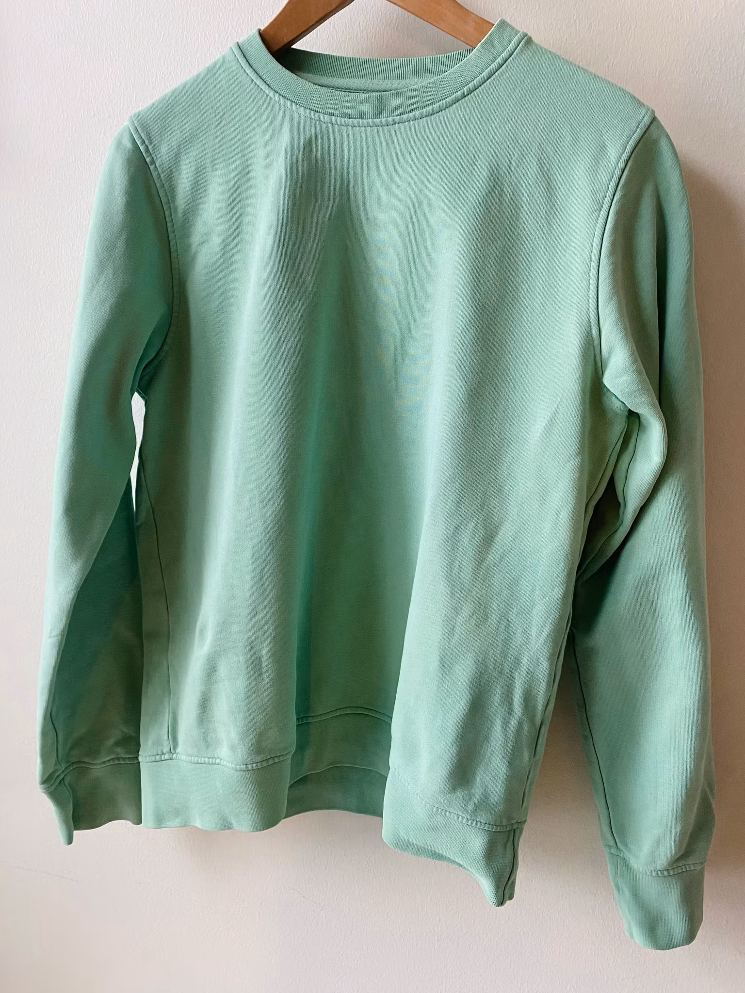 Beskrivning: Mintgrön collegetröja från Colorful Standard, som gör en massa unisexkläder i ekologiskt eller återanvänt material, kläderna tillverkas i Portugal. Det är en klassisk collegetröja med creneck och avslappnad form. Storleken är generös, givet att det är unisex. Denna XS passar upp till minst M, beroende på önskad passform. Se mått nedan.