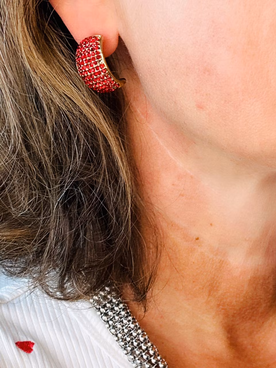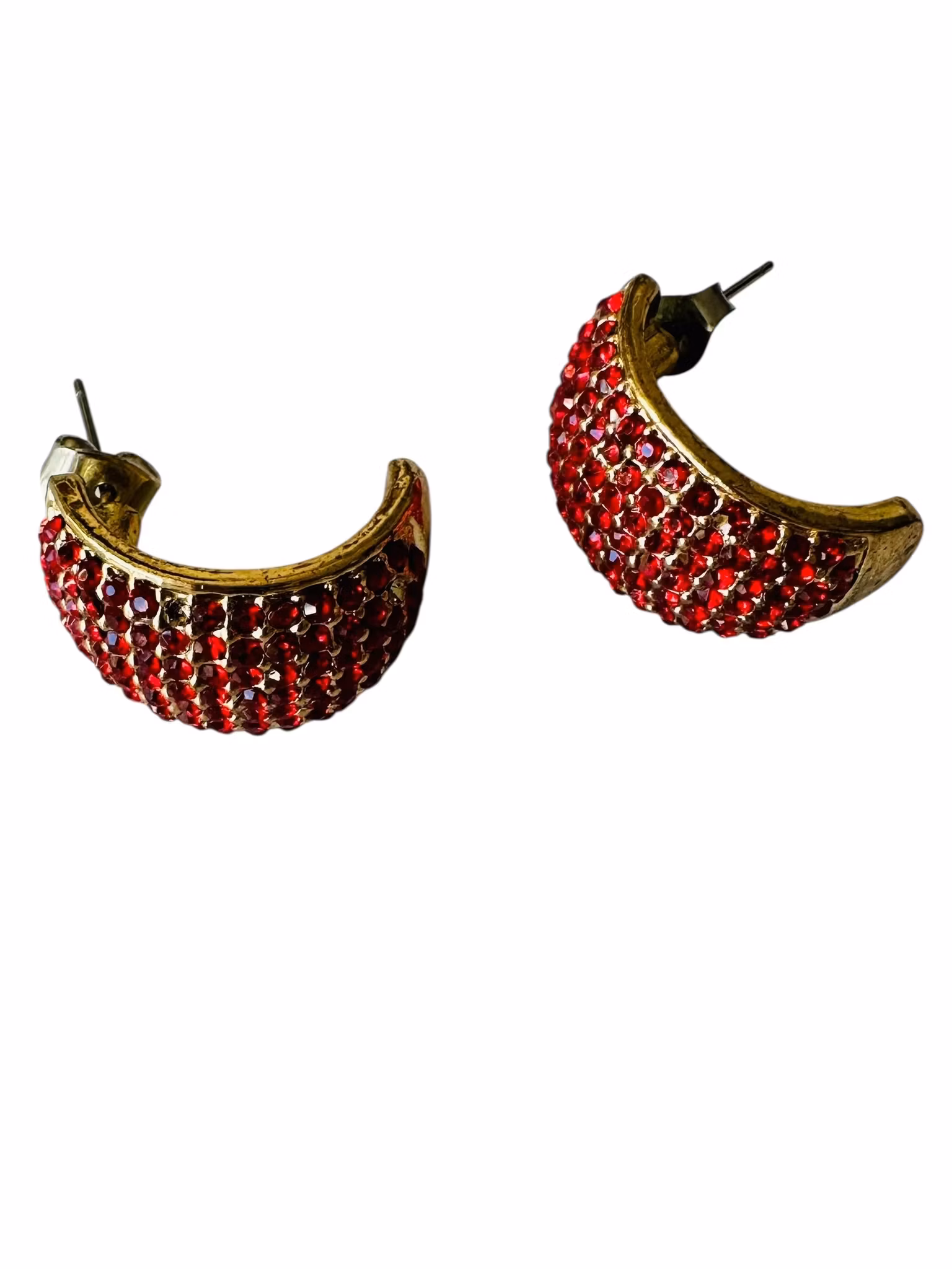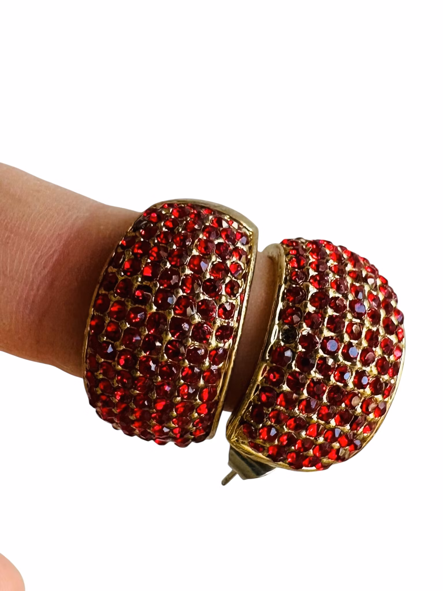 Beskrivning: Halva ringar, breda med rader av röda stenar.
