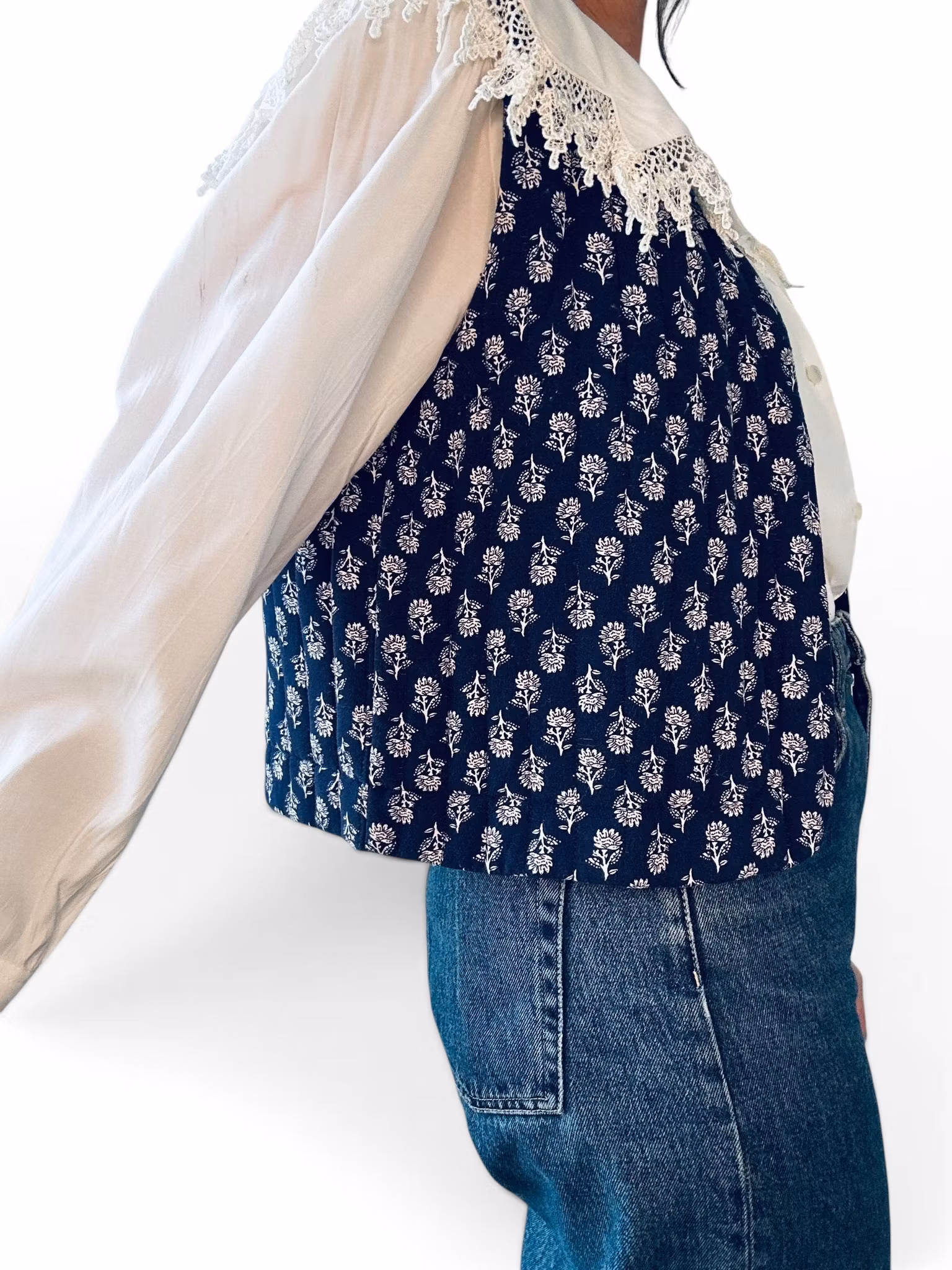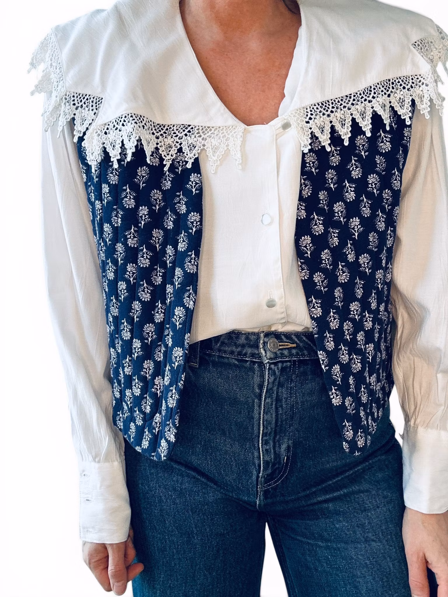 Sökord: quiltad väst dam, blå väst dam, mönstrad väst, bohemisk väst, lager på lager dam, Encuentro väst, vårväst dam, second hand väst, blommig väst, indigo väst