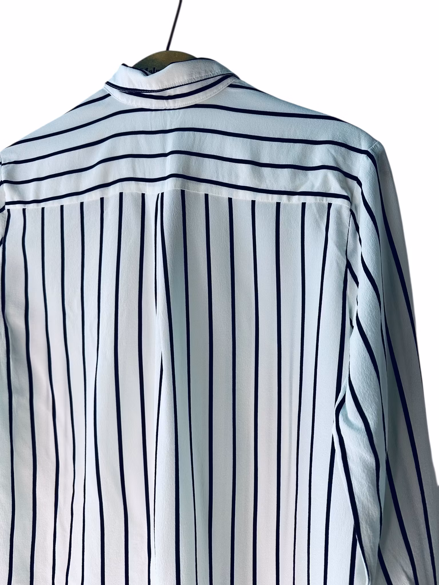 Beskrivning: En klassisk skjorta i vitt med svarta ränder i siden från HM. Uppfattas som något rymlig i storlek.