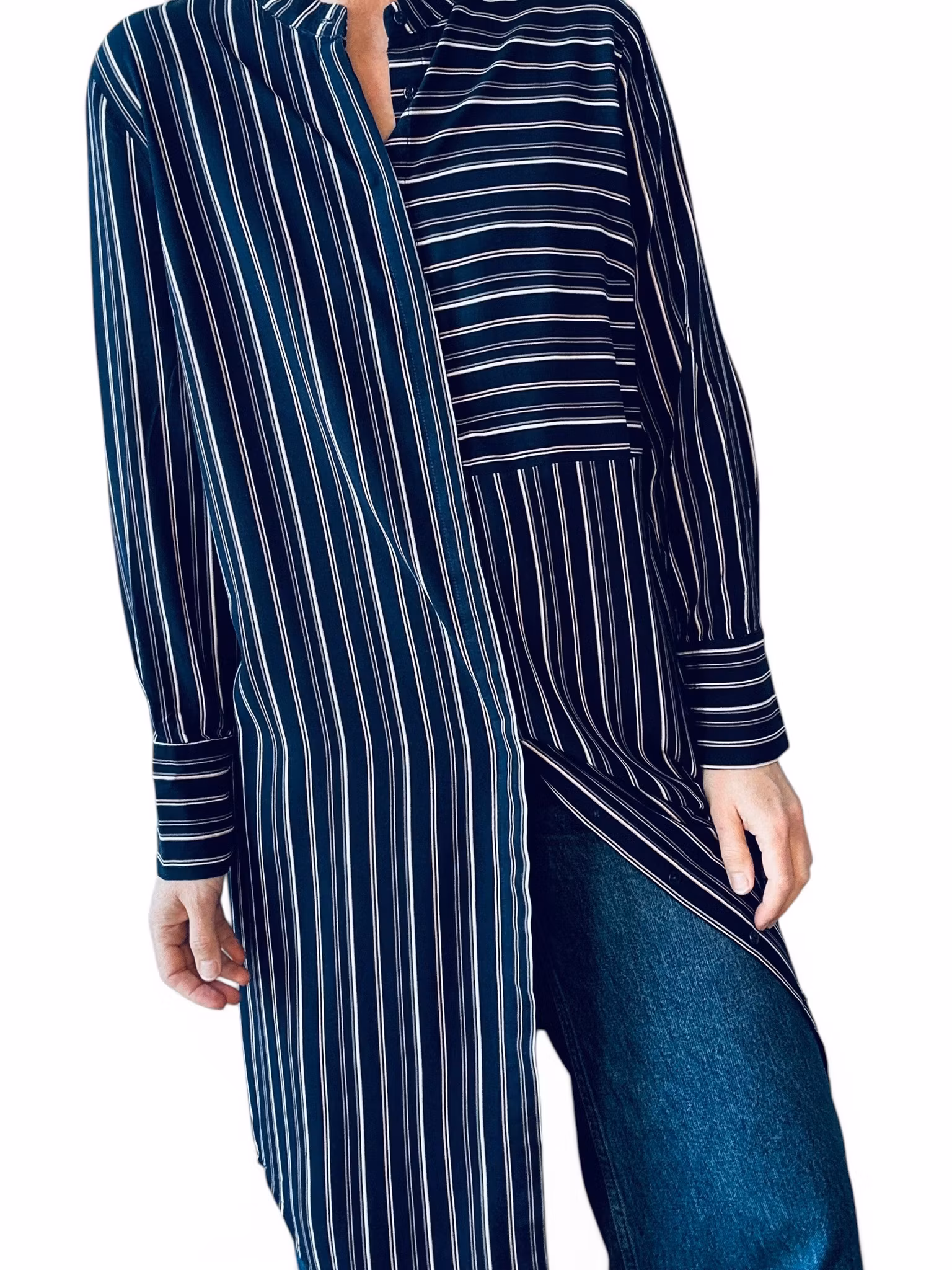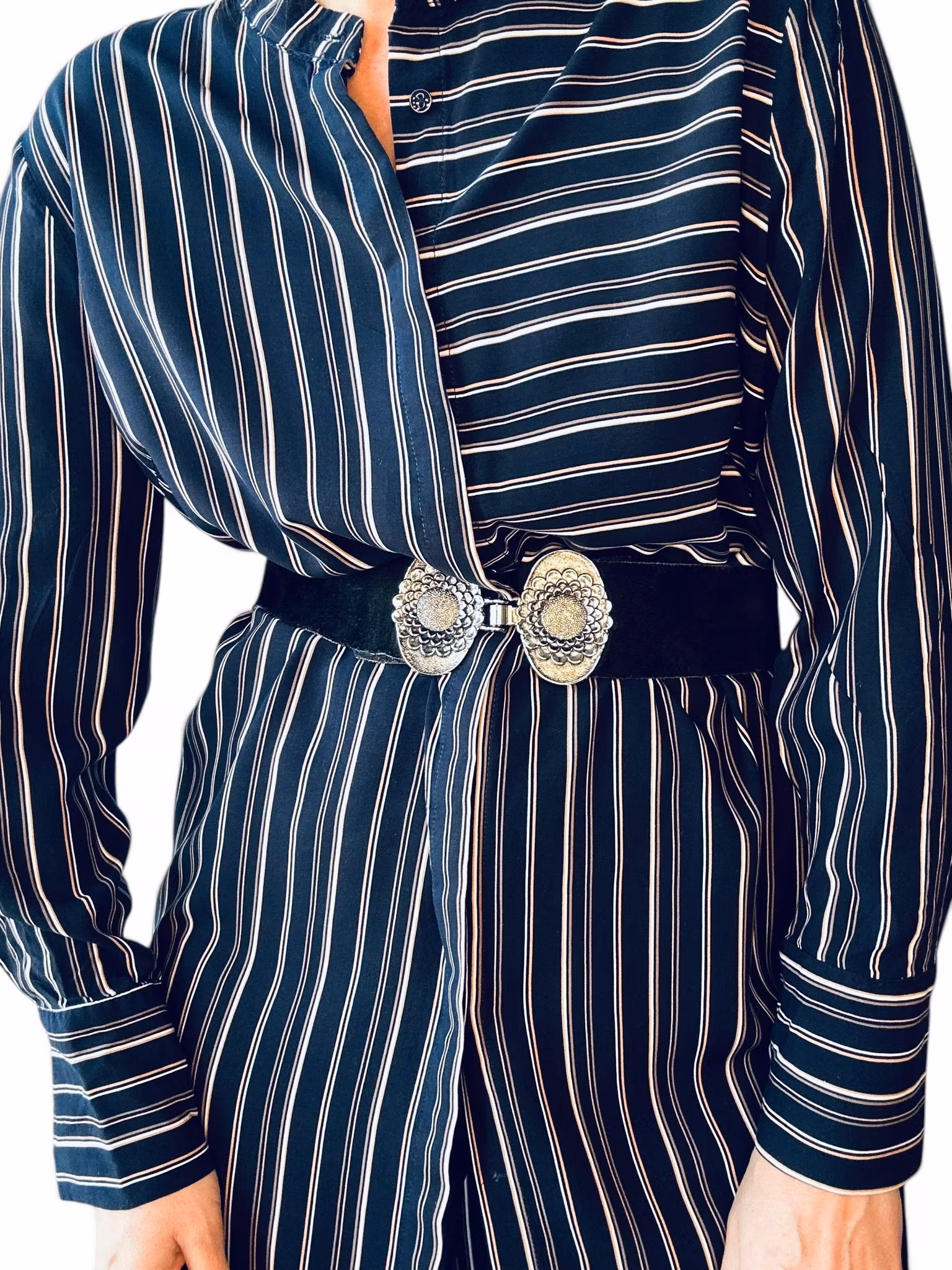 Sökord: Skjortklänning, randig klänning, Liberté Essentiel, viskosklänning, navy striped dress, long shirt dress, hållbart mode, second hand.