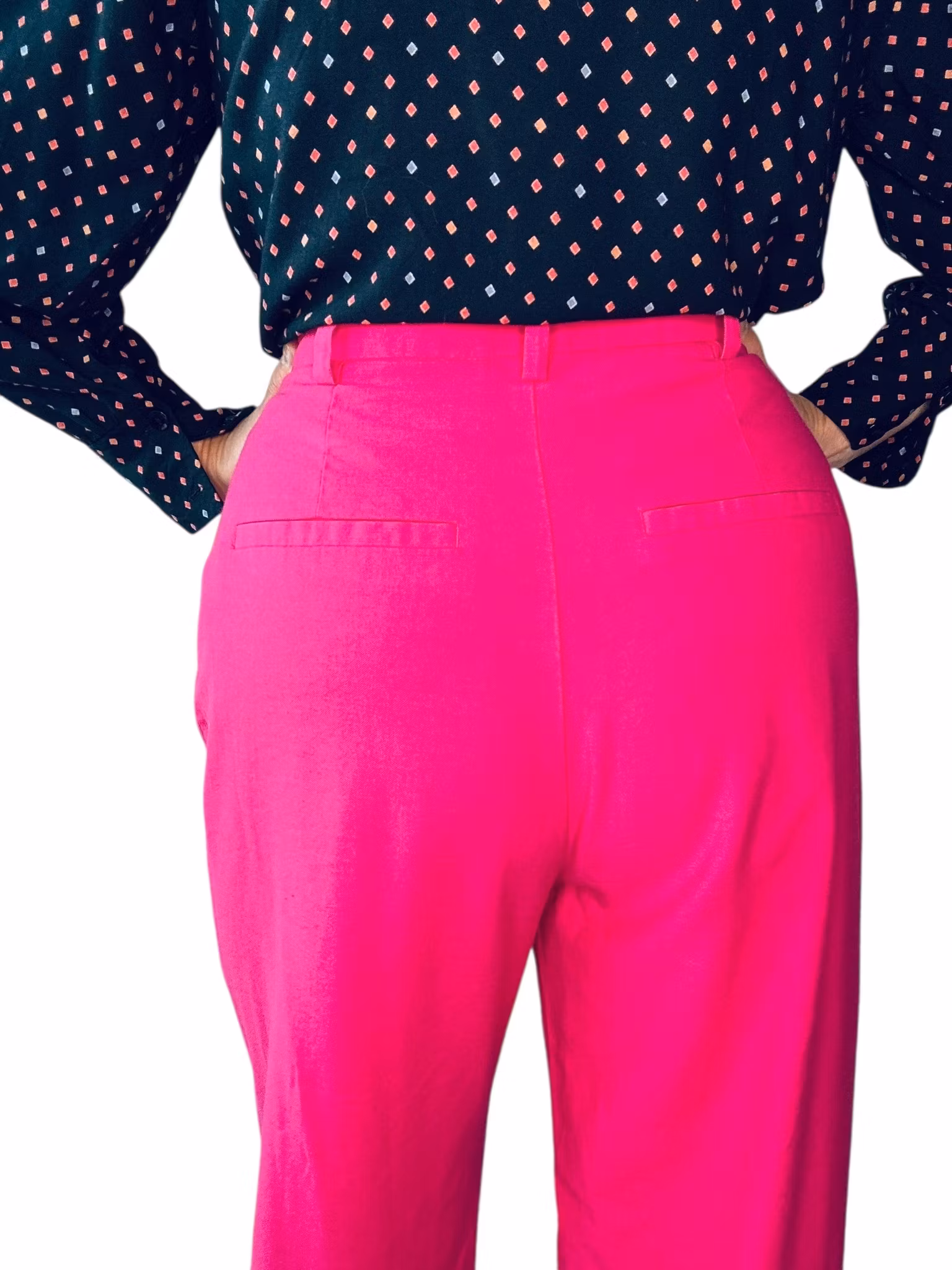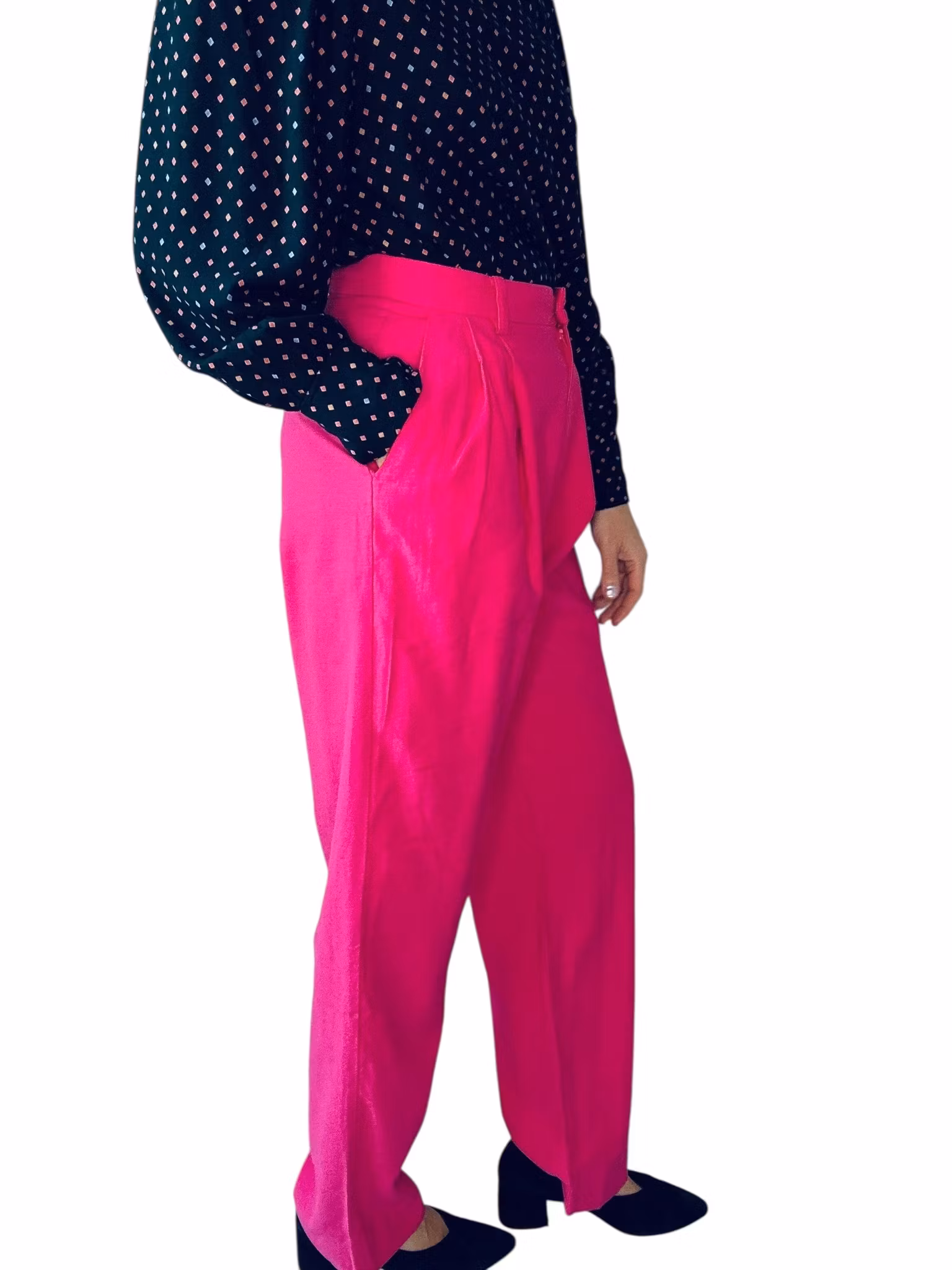 Beskrivning: Det här är ett par favoritbyxor vi alltid blir lika glada att få in. I en perfekt avslappnad modell med en pigg rosa kulör är de ett kul inslag i garderoben. Materialet är viskos med en liten del polyester vilket ger dom en bekväm och lättfixad struktur. Sidfickor och stolpfickor bak. Från Lindex.