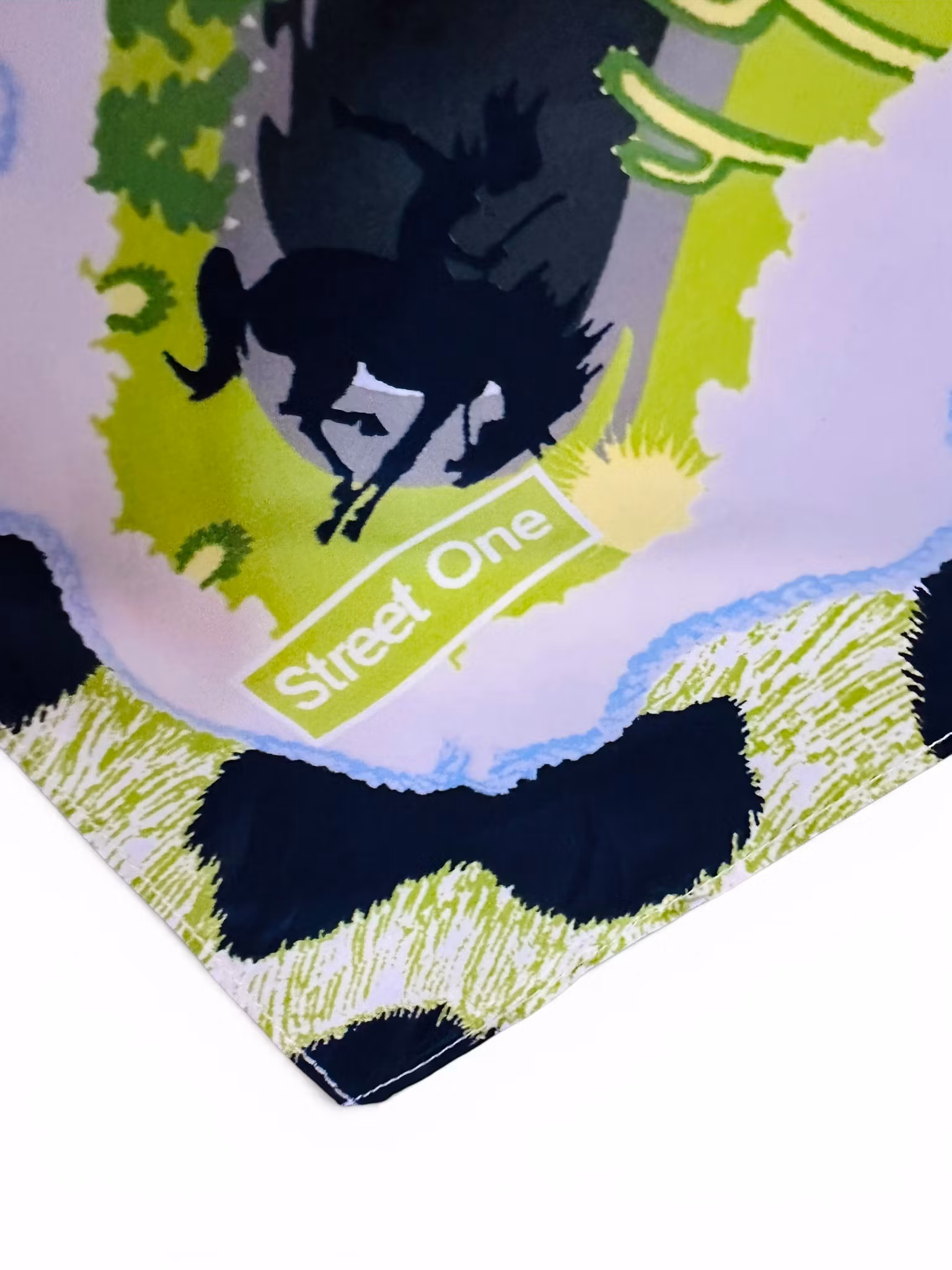 Beskrivning: Liten fyrkantig scarf med westernkänsla i gröna toner med motiv av bl a kaktusar. Från Street One.