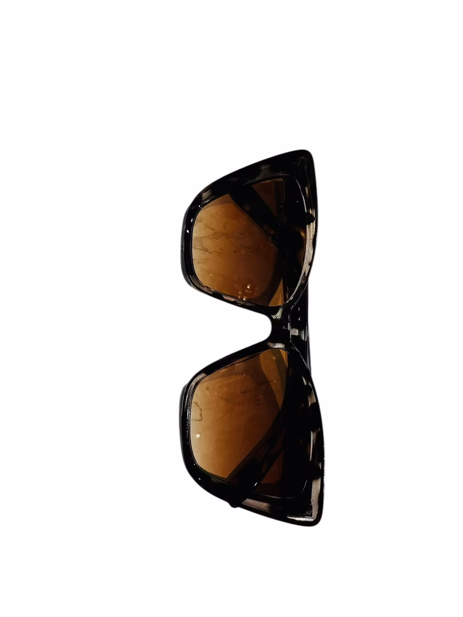 Beskrivning: Stora solisar med bruna bågar som är lite kattformade.