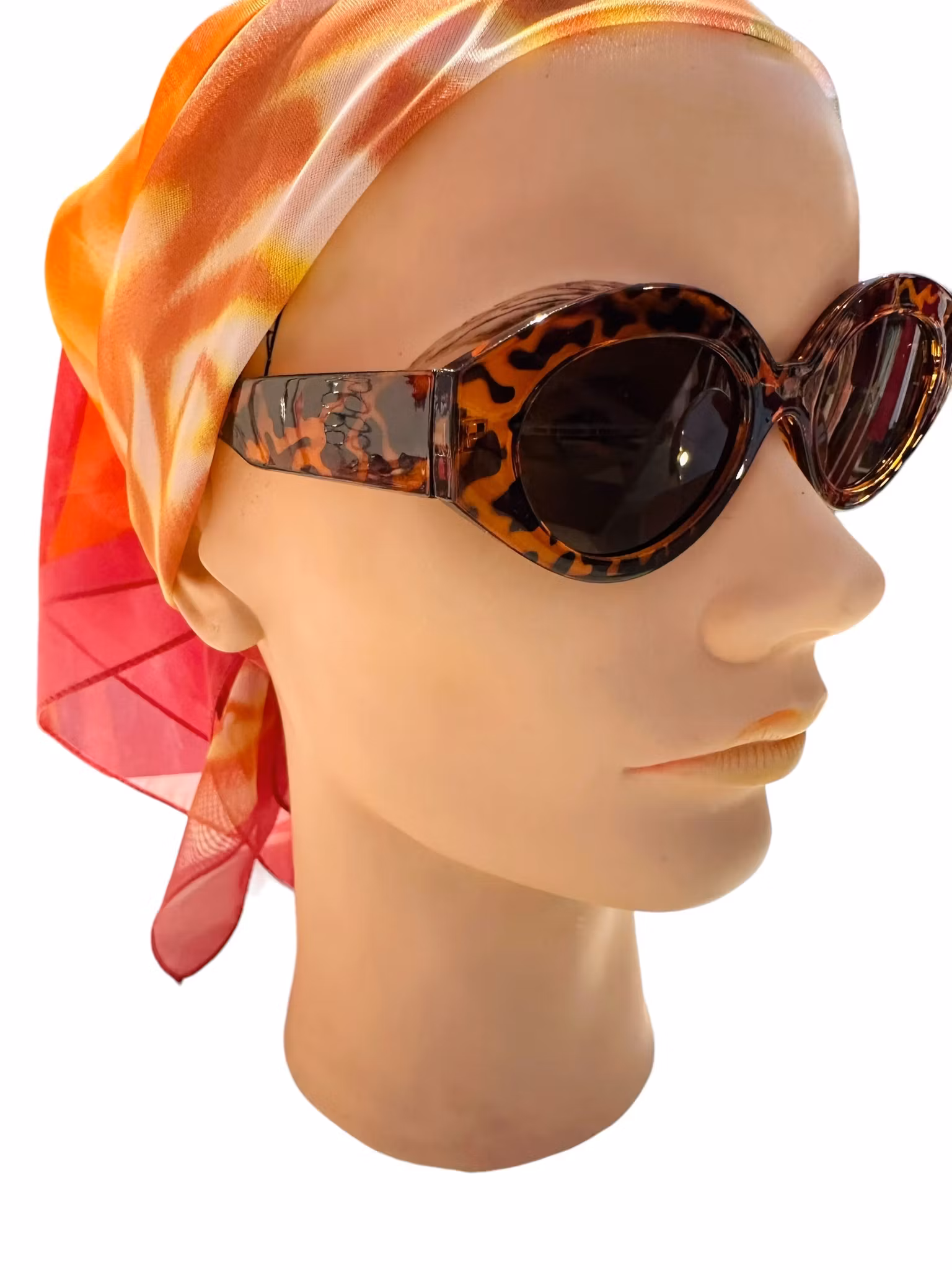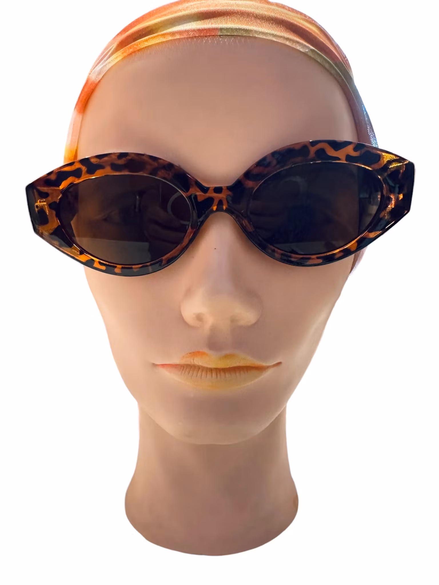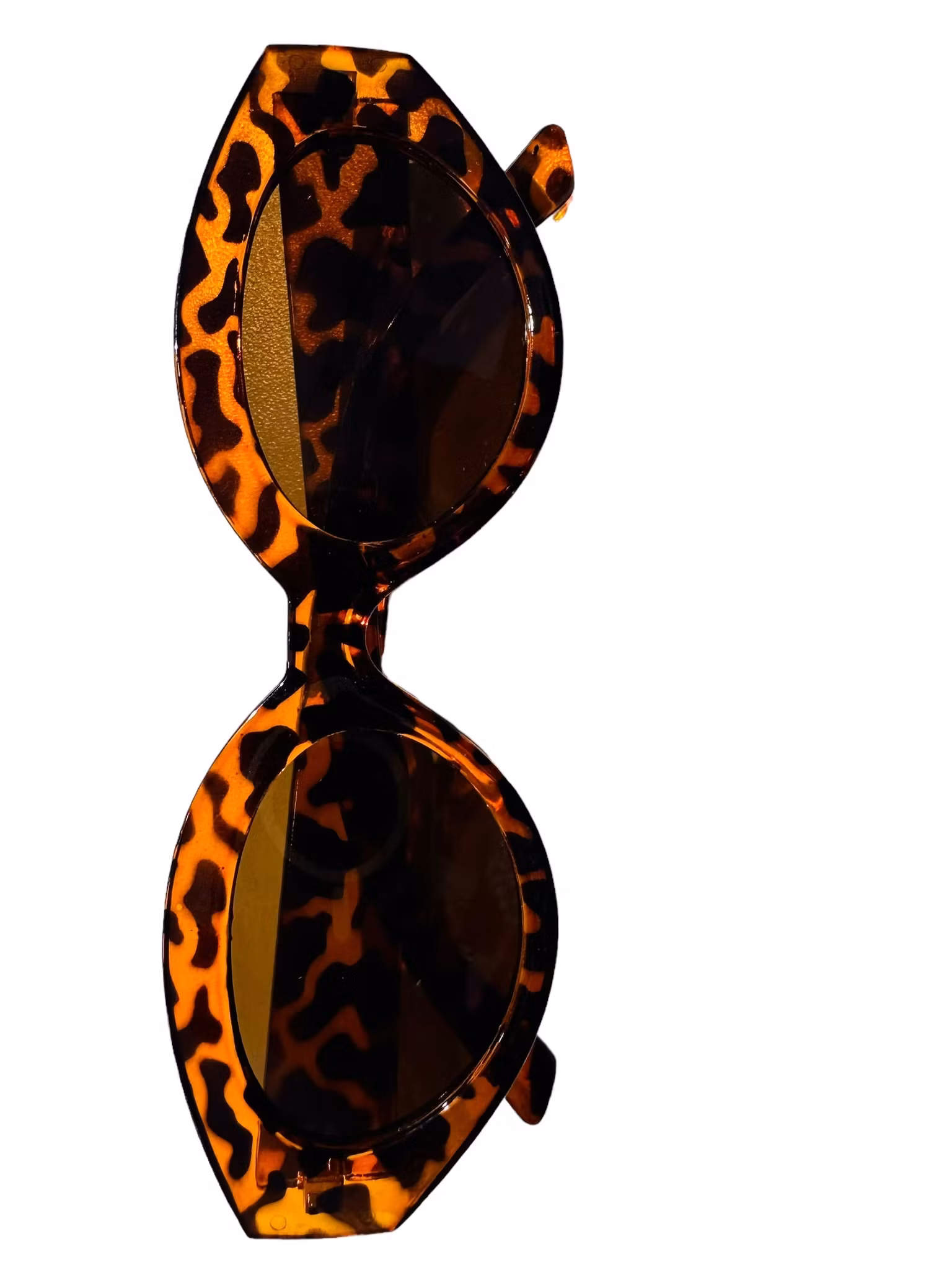 Beskrivning: Trendiga solglasögon i smal modell i sköldpaddsmönstrade bruna bågar.