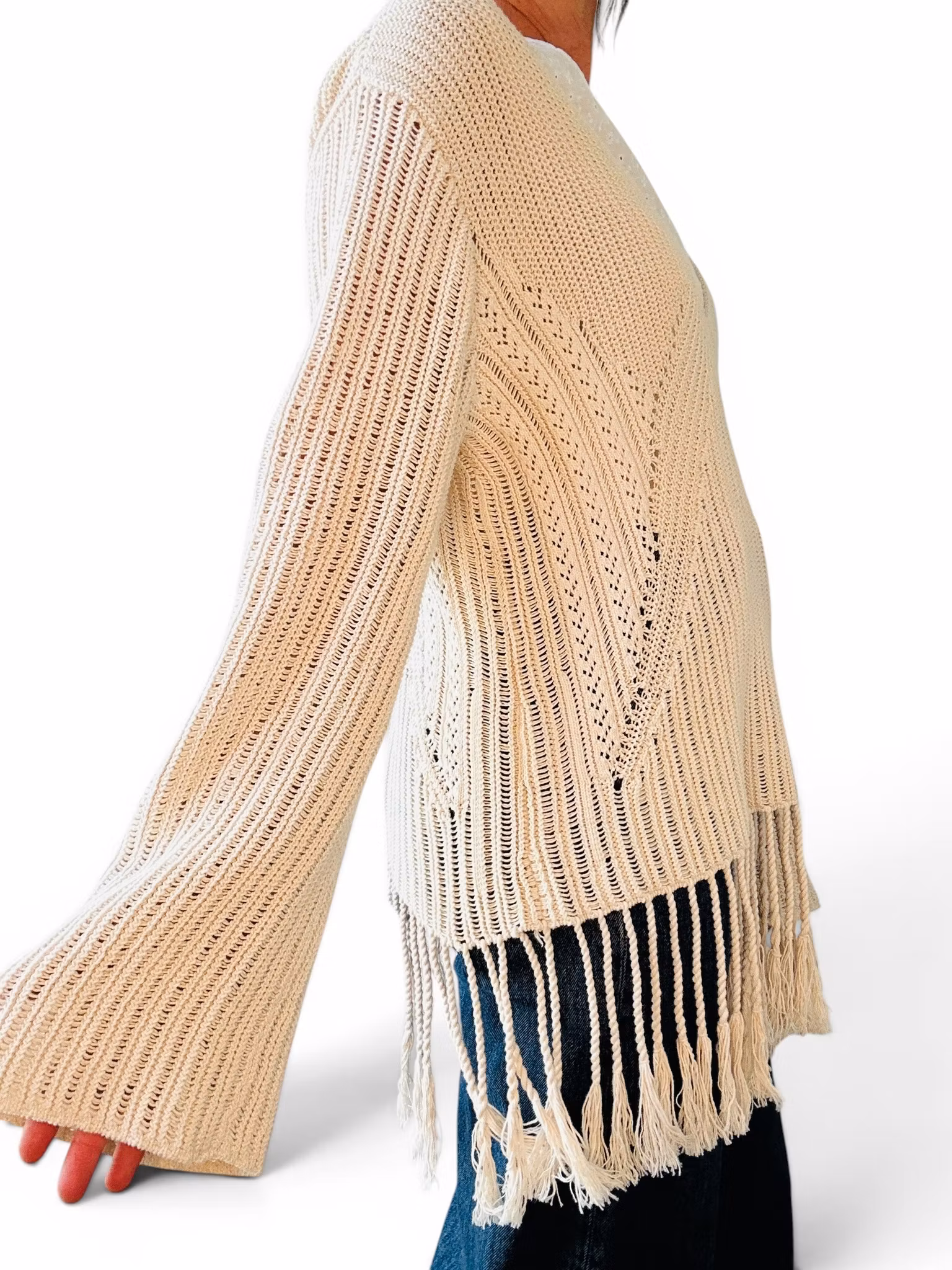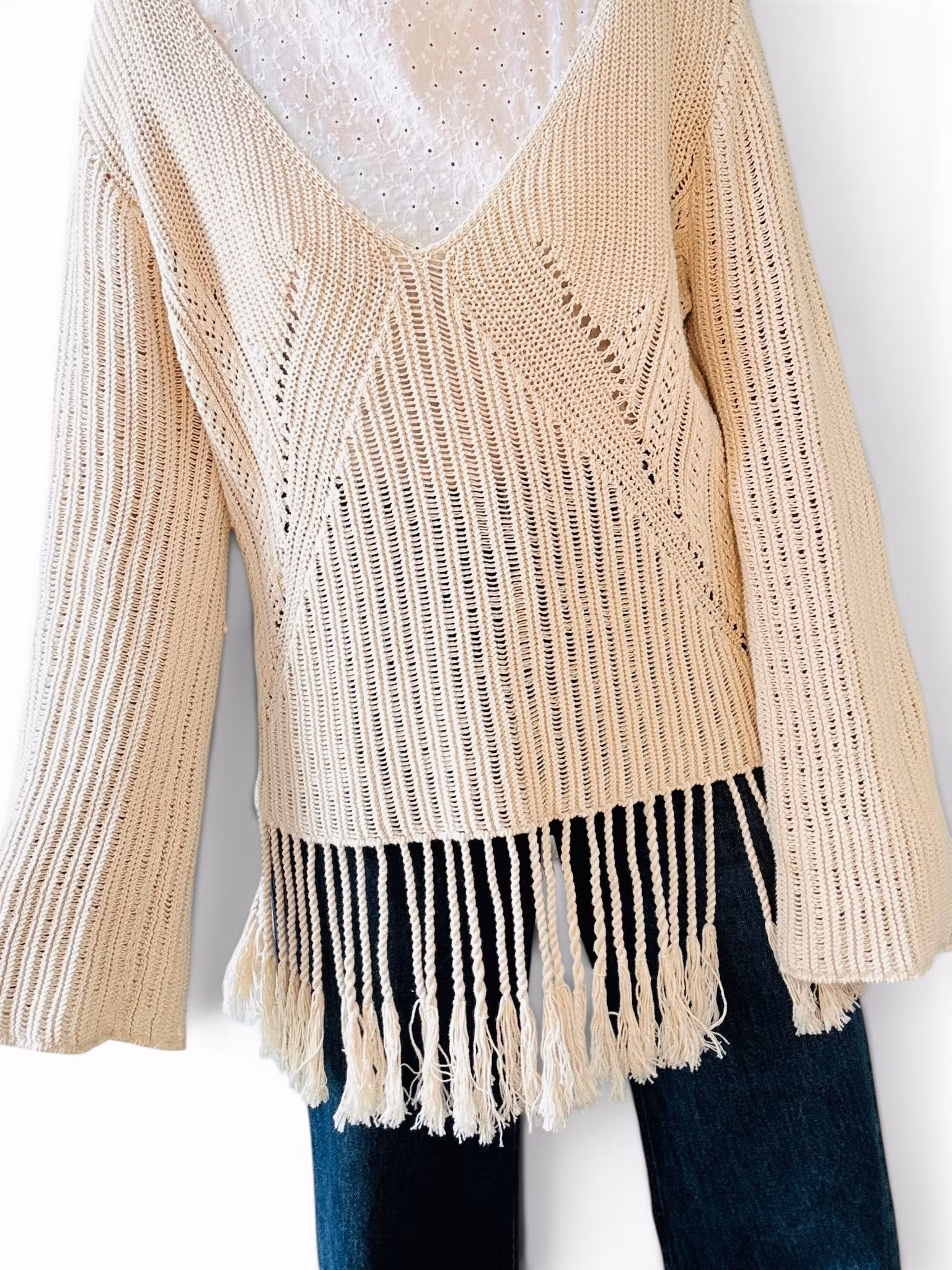 Sökord: stickad topp dam bomull boho topp fransar hm stickad tröja beige sommartopp vintage inspirerad bohemisk topp