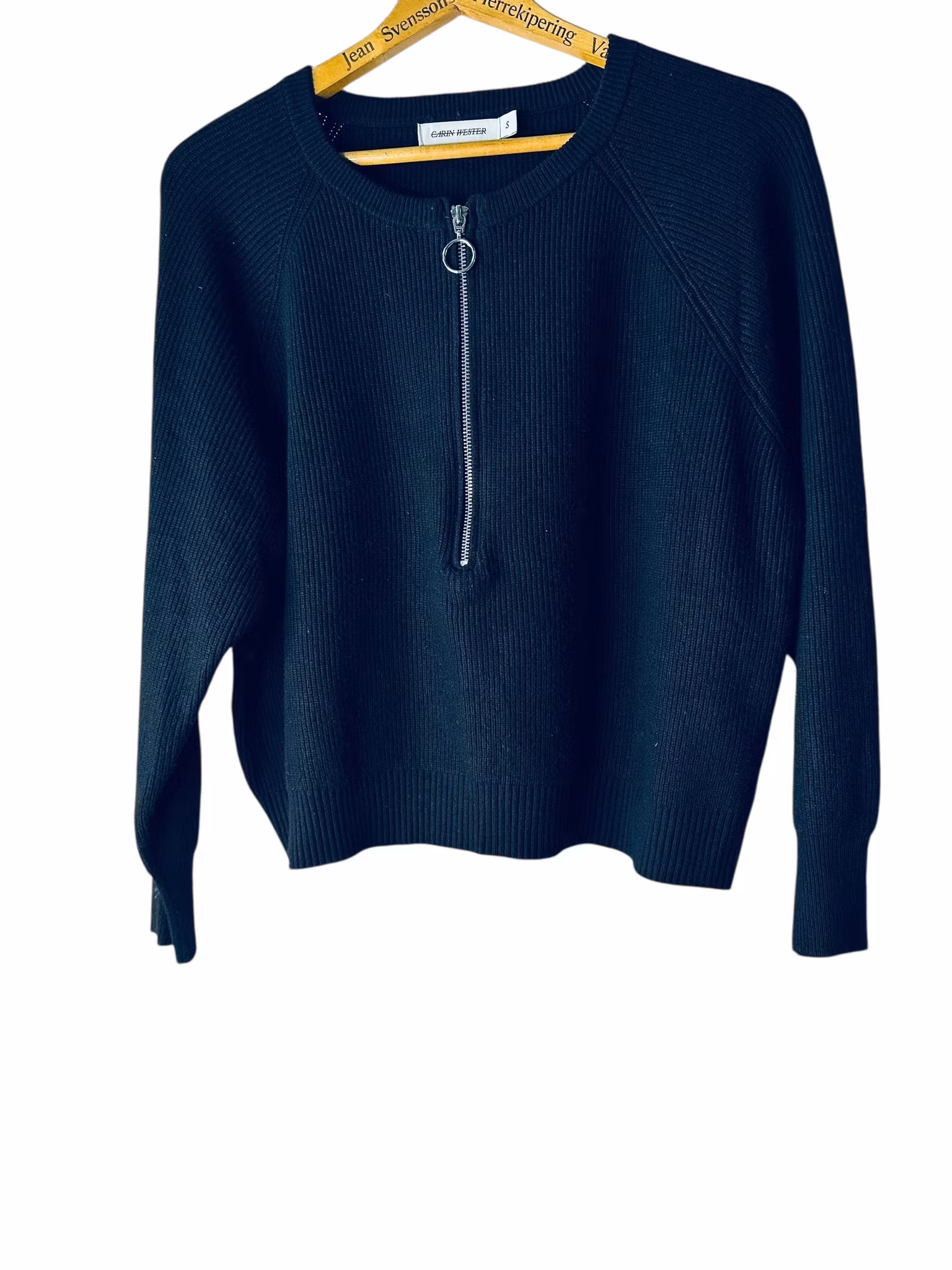 Beskrivning: Mjuk, stickad tröja i viskosmix från Carin Wester, tröjans modell är "Tira". Vid halsringning med silverfärgad dragkedja med ring. Boxig modell och lång ärm. Snygg också med polo i avvikande färg under som på några av bildens. Rymlig i storlek.
