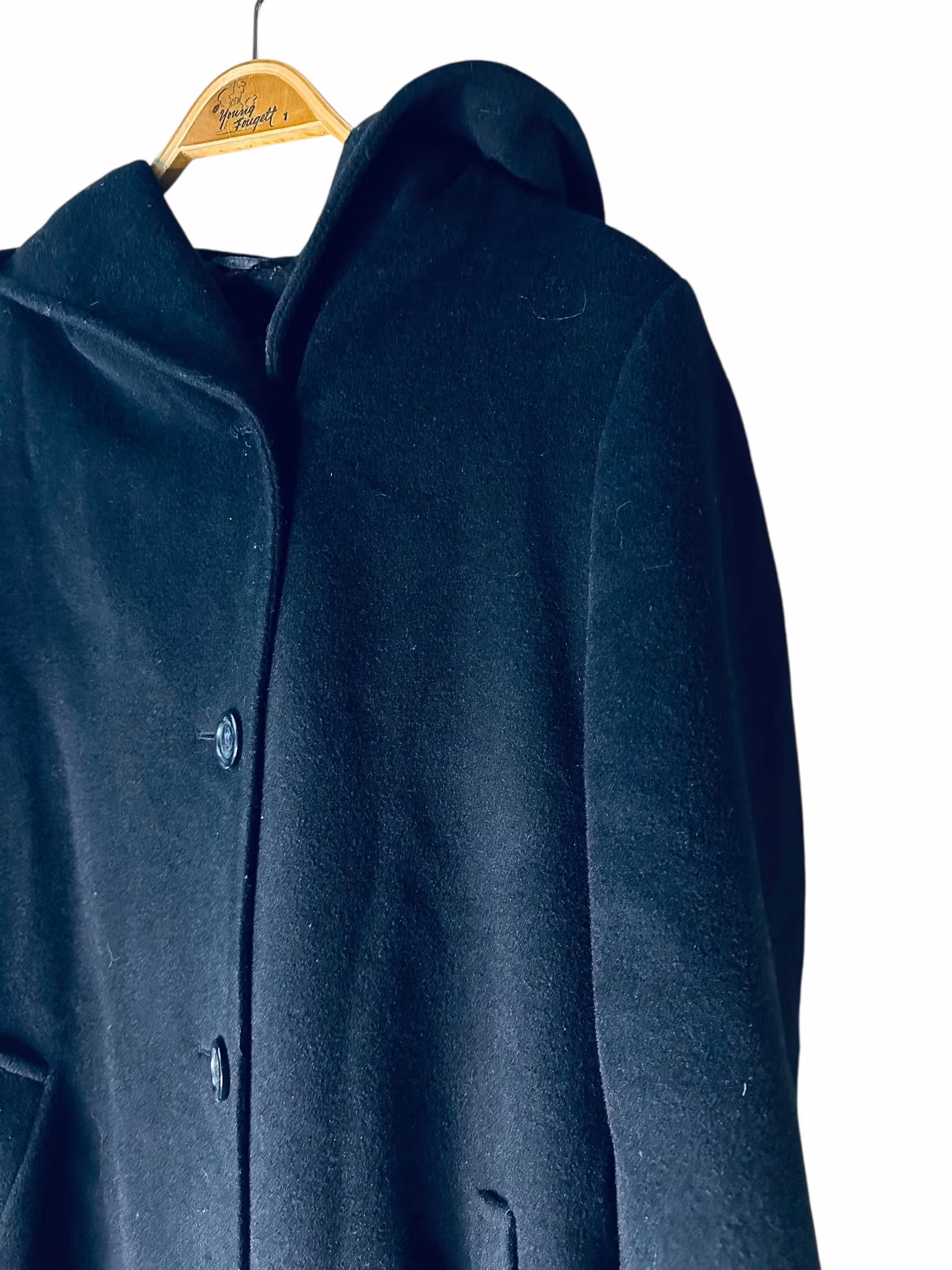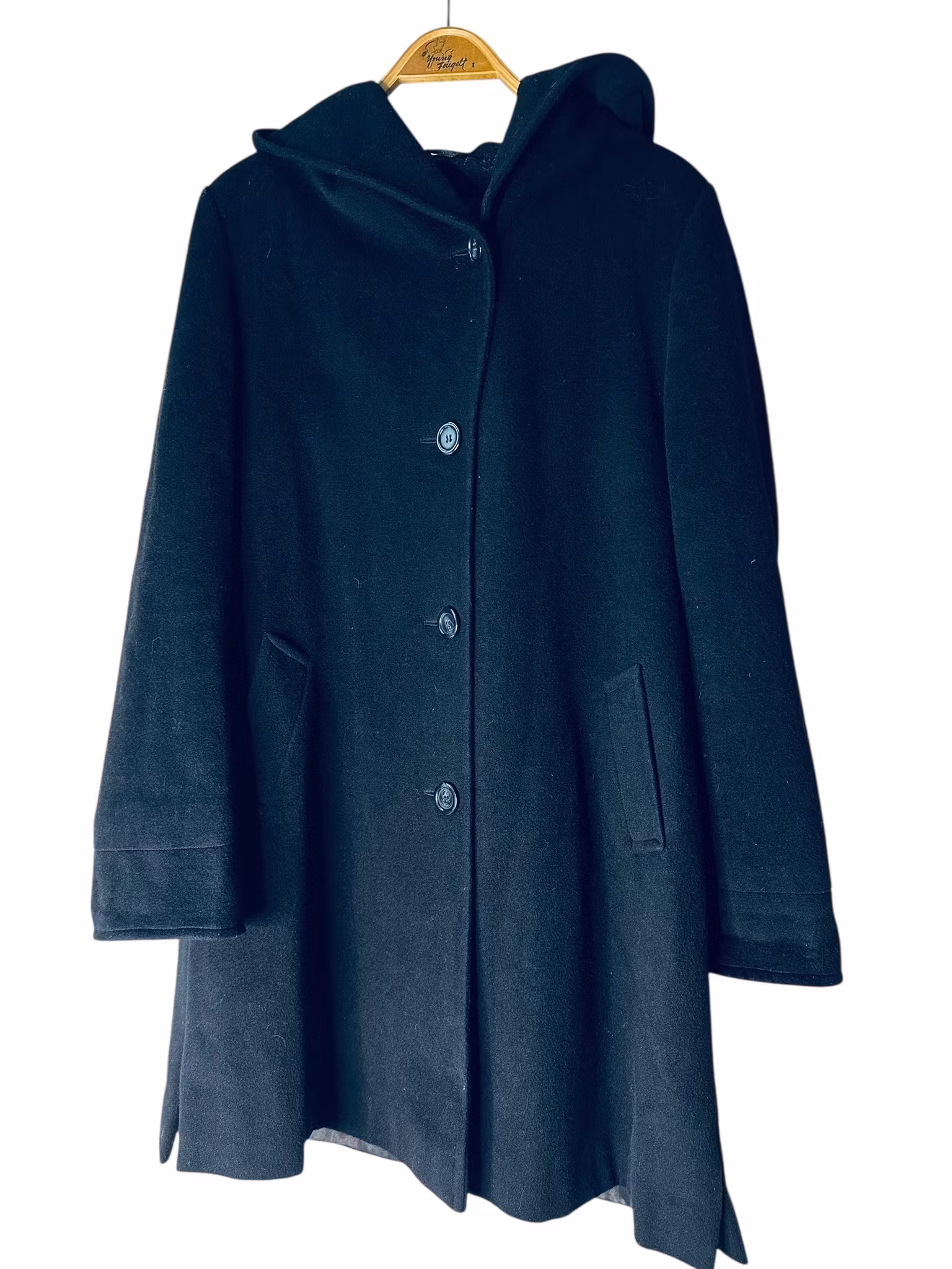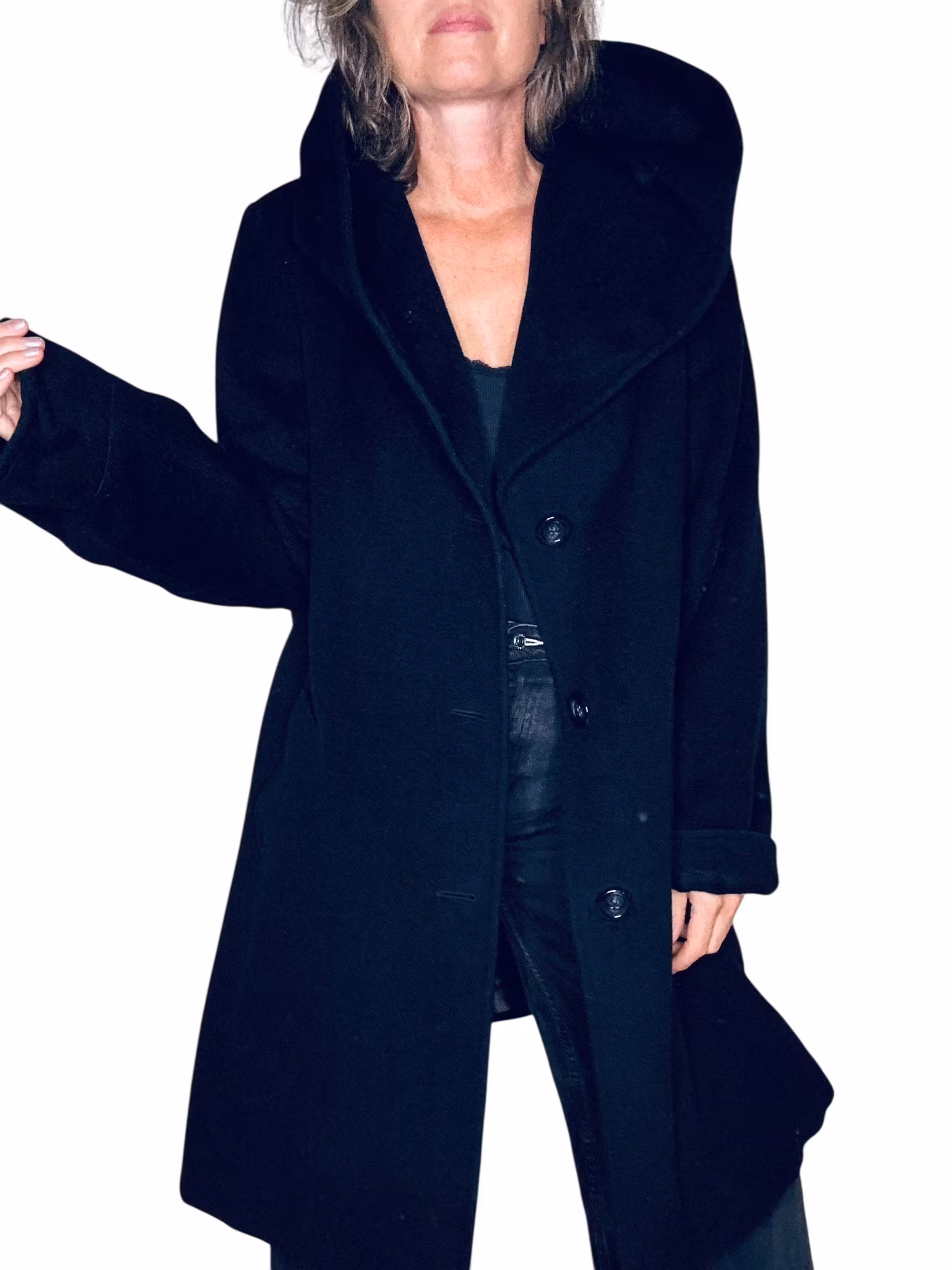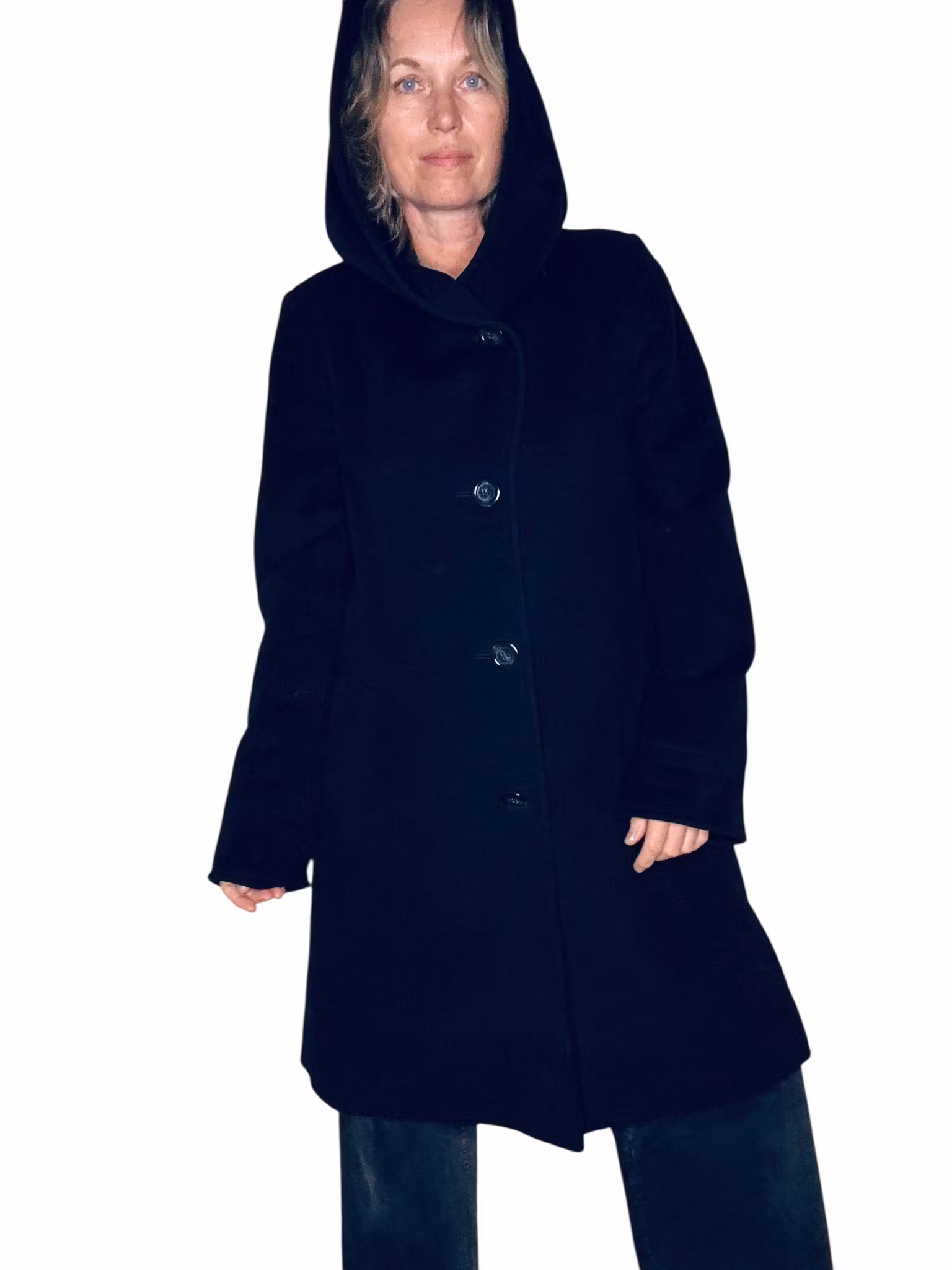 Beskrivning: Mjuk kappa i kortare modell med lätt utställd form och en underbar luva som är oversize nog att kunna riktigt gosa in sig i. Ärmarna är också de extra långa, men kan vikas upp om en inte vill ha de så. Små slitsar i sidorna. Under den mjuka ullen är kappan helfodrad i blankt material. Från danska Herluf Design, som började sin bana på 60-talet och som var kända för sina fina materialval och sina inkluderande storlekar.