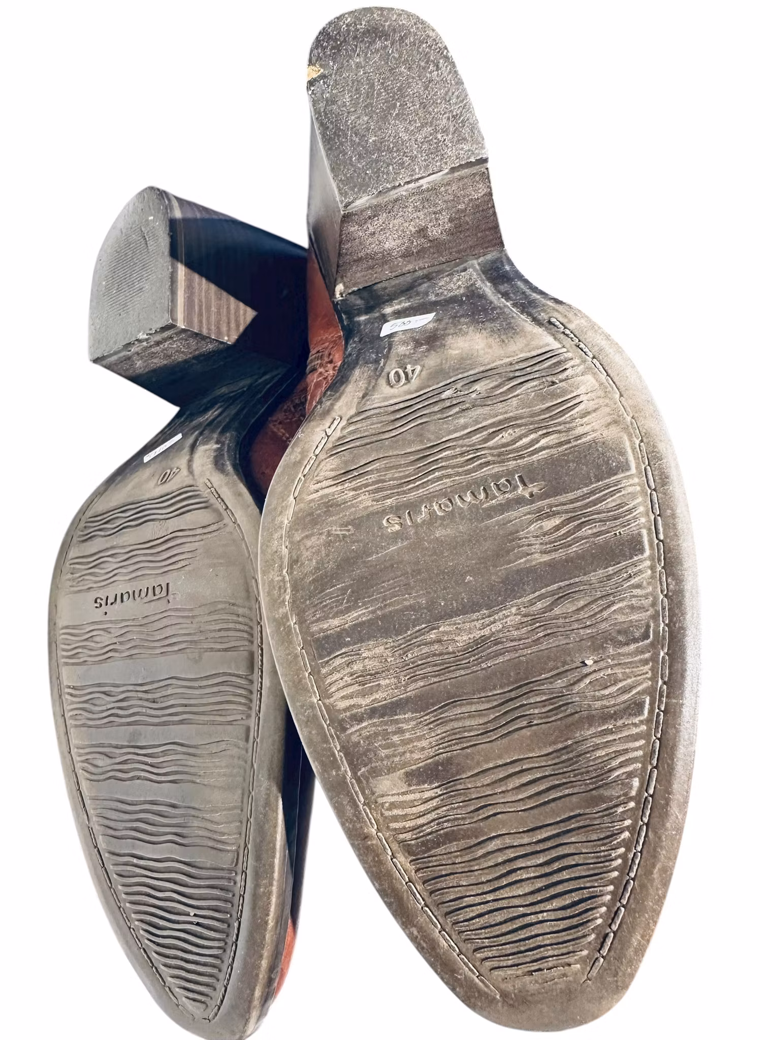 Beskrivning: Vinröda boots från Tamaris i skinn. I cowboymodell med sitt v-skurna snitt och rundade sidor. Stängs med dragkedja på insidan.