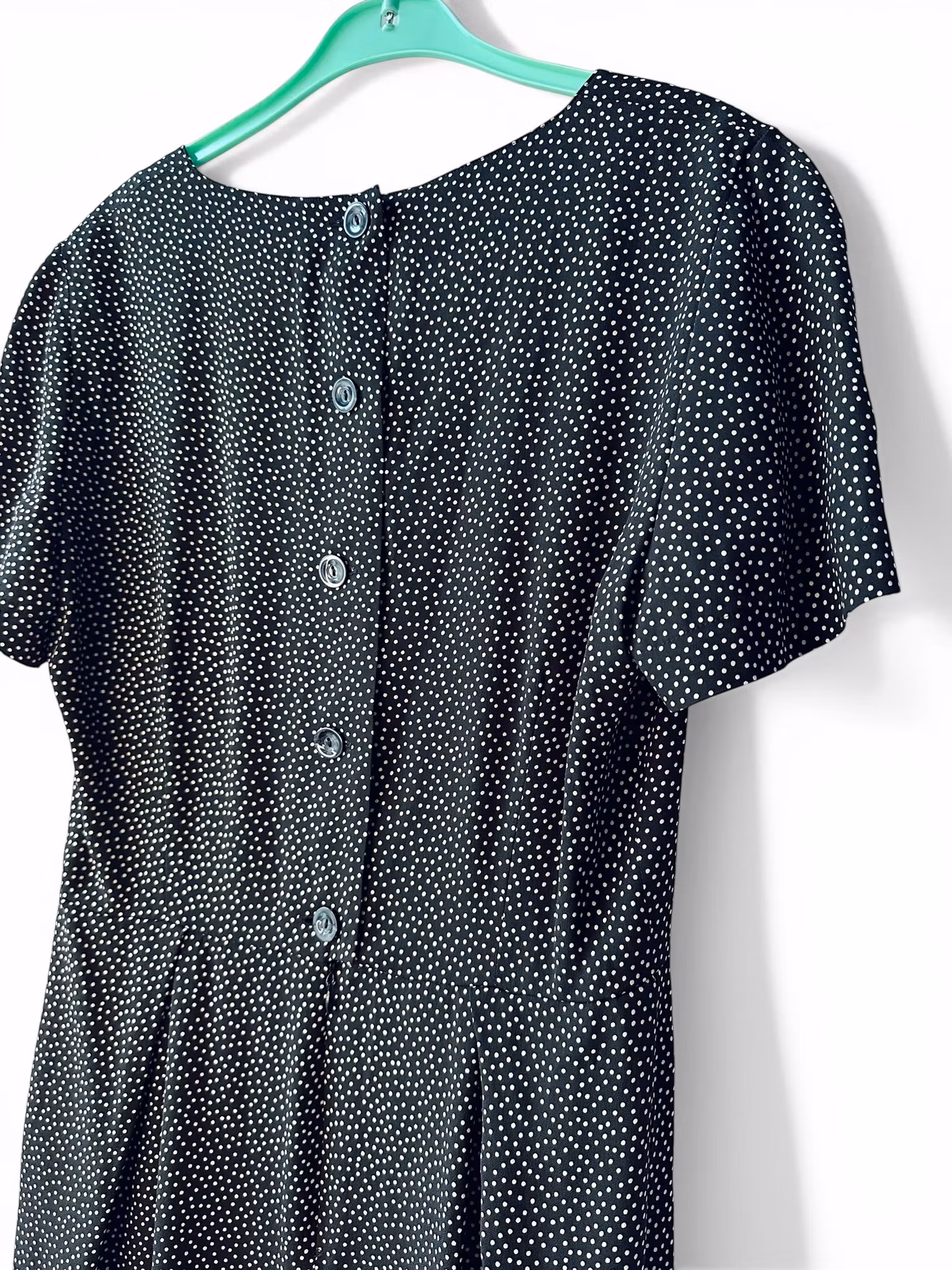 Beskrivning: Fransk klänning som känns just väldigt fransk. Vackra enkla linjer med sofistikerade detaljer. Som knapparna i ryggen, de slicka fickorna och materialet som känns nästan strykfritt och som är i acetat och siden. Från Jean Clauce Paris (JC)