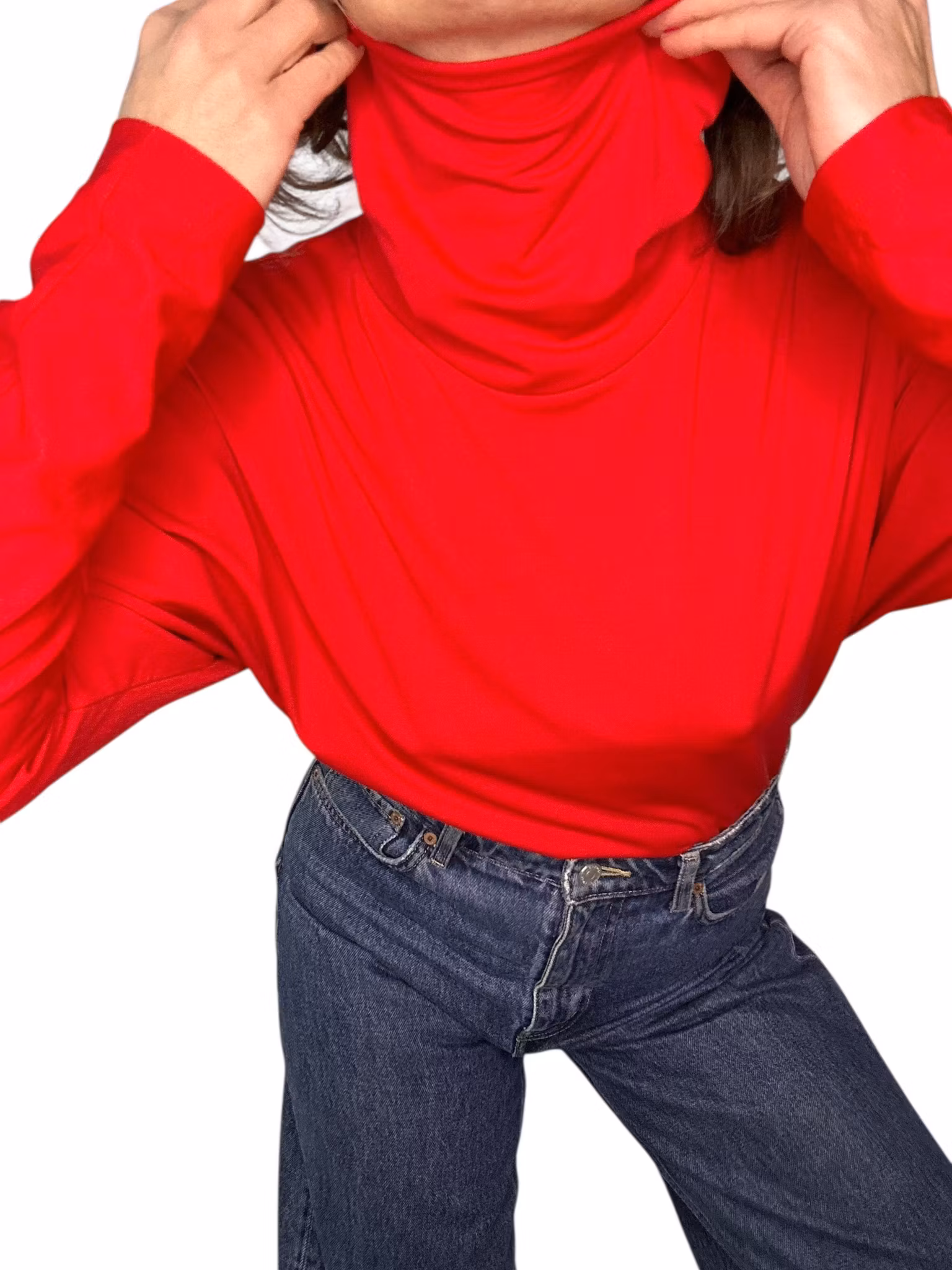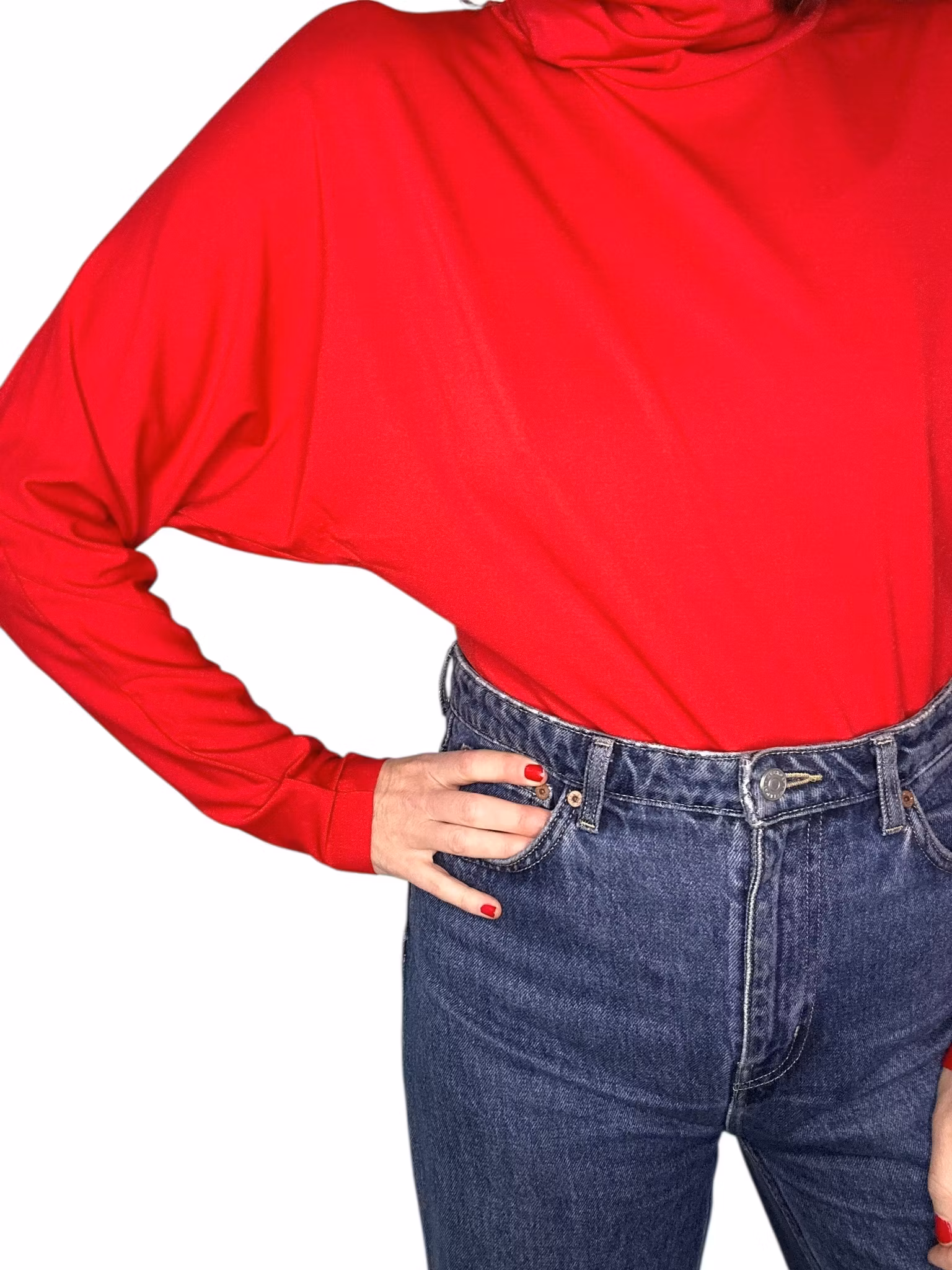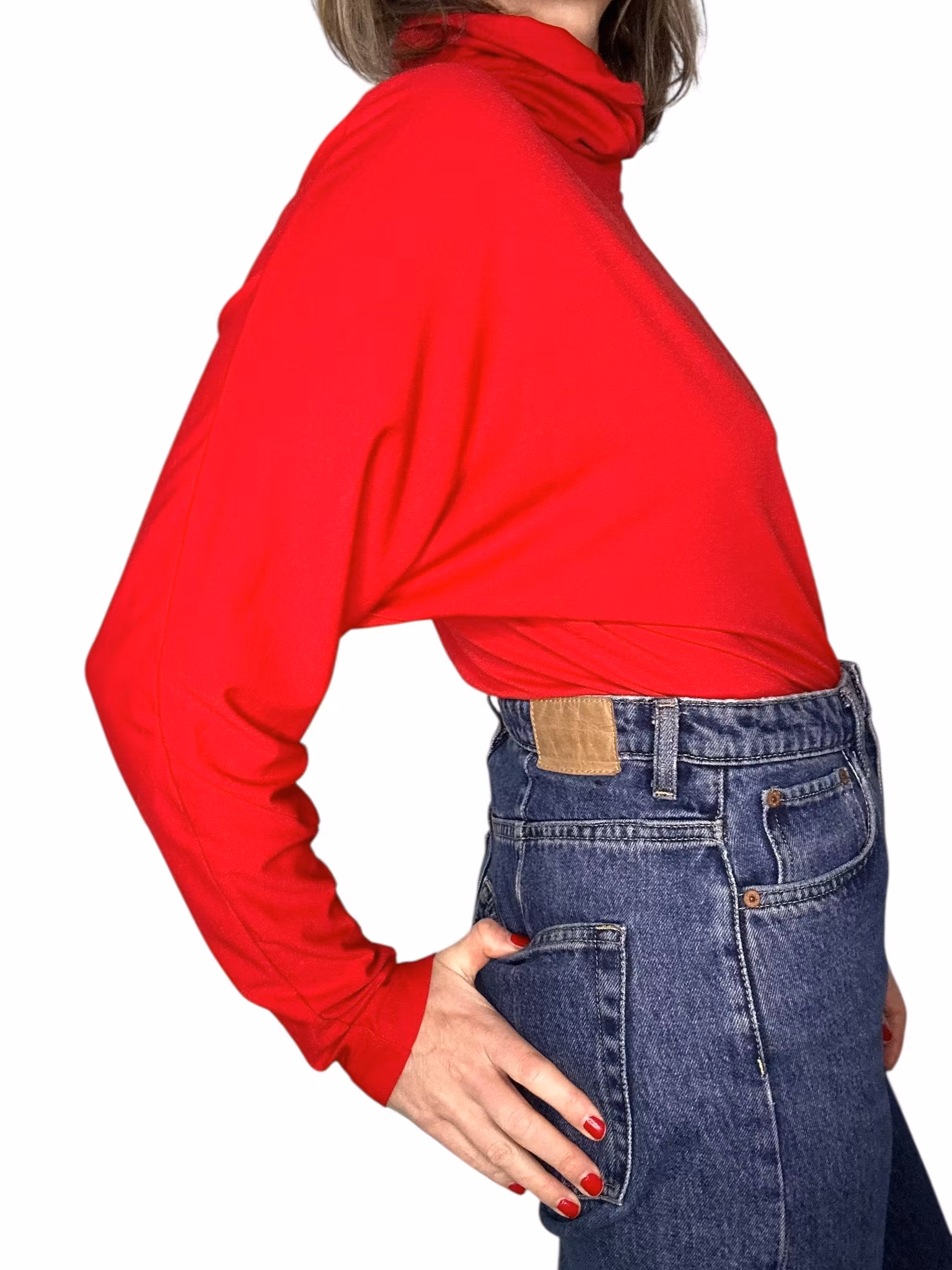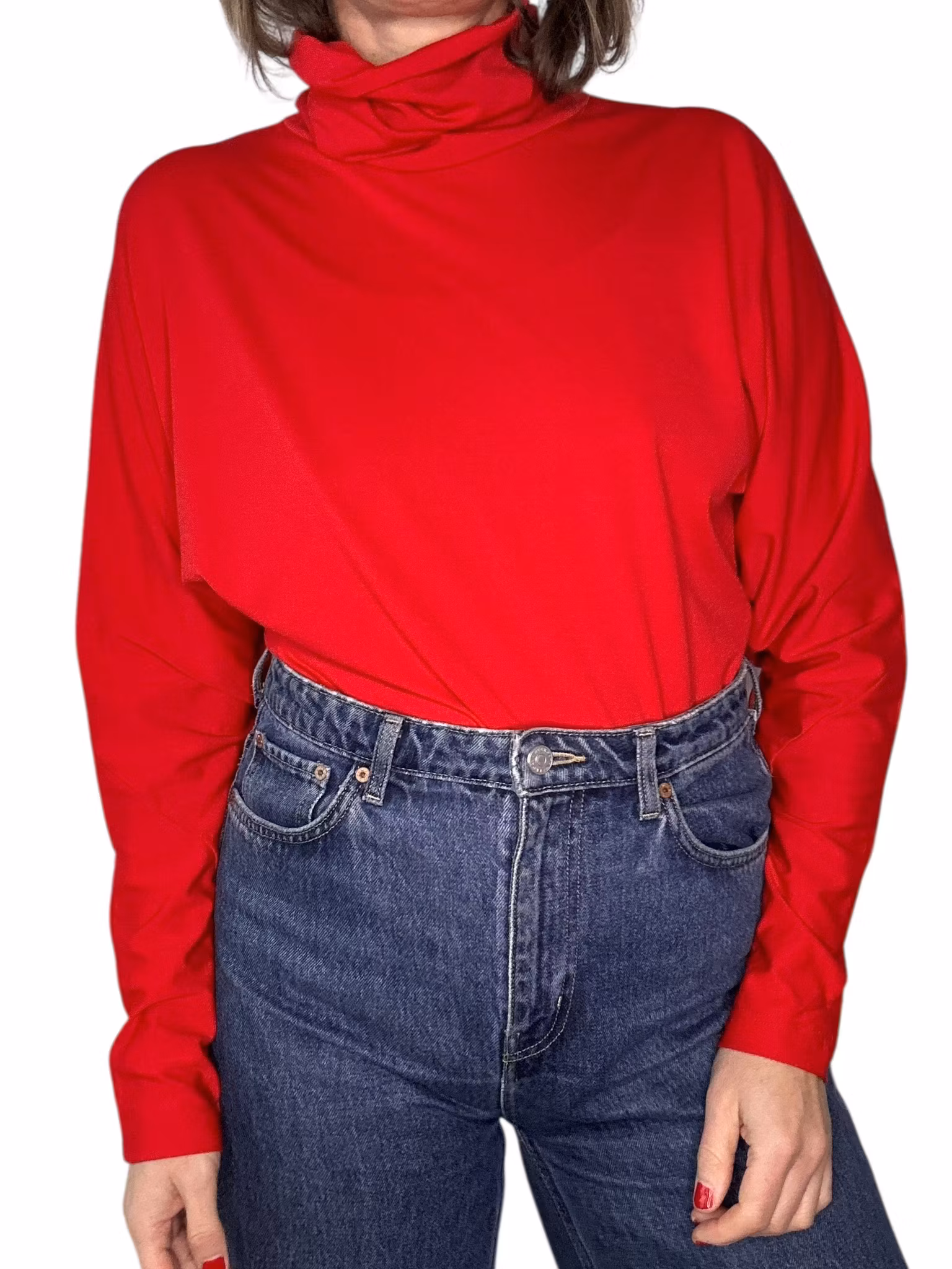 Beskrivning: Vintage polo med pingvinärm i rött, blankt lite stretchigt material. Vid krage som kan hasas ner eller vikas dubbel. Från HM.